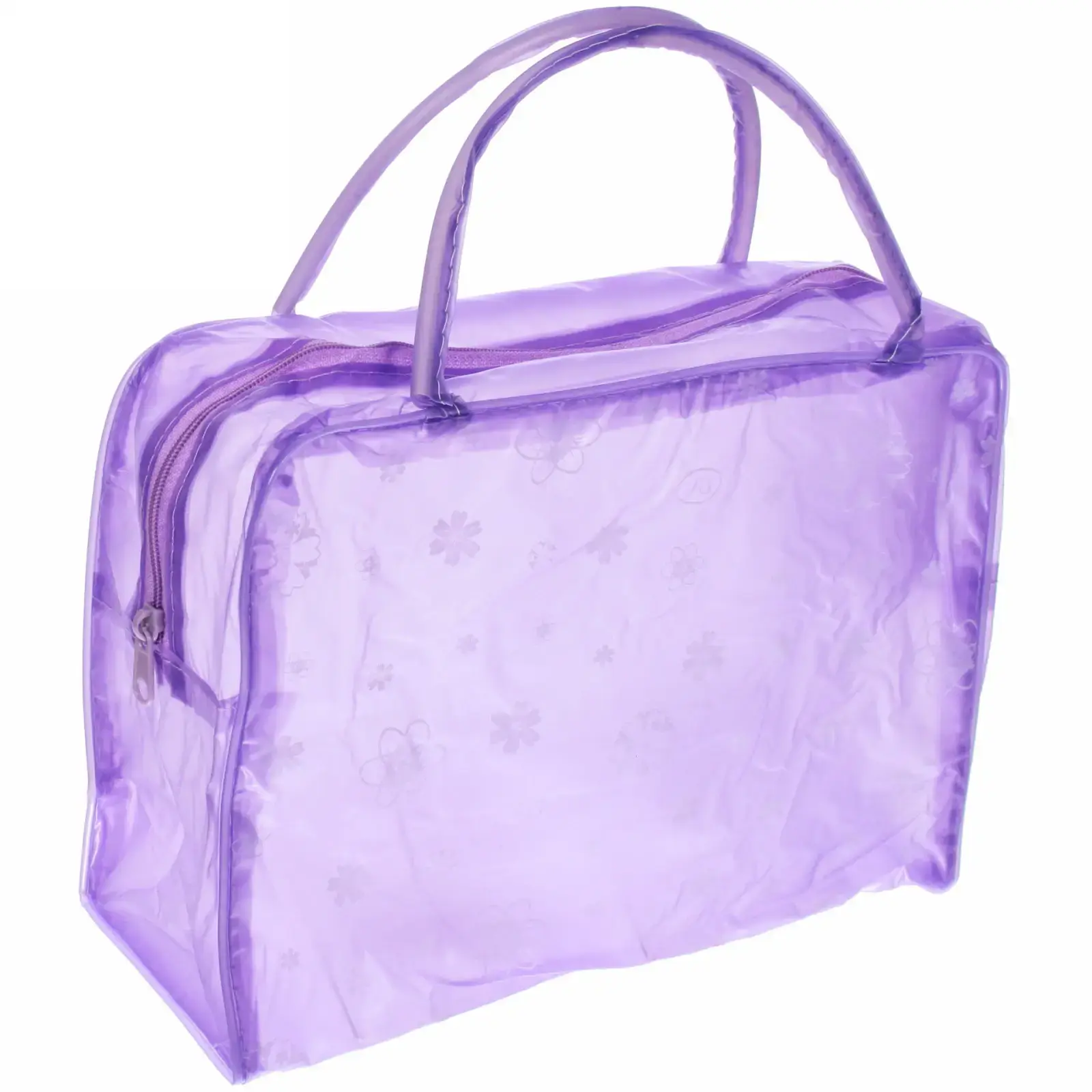 Эта косметичка станет вашим незаменимым помощником в организации косметики и мелких предметов. Яркий фиолетовый цвет и стильный цветочный узор придают ей уникальный вид, а прозрачный материал позволяет быстро находить нужные вещи. Благодаря компактным размерам 24х17 см, она легко помещается в сумке или рюкзаке, что делает её идеальным выбором для путешествий и повседневного использования.