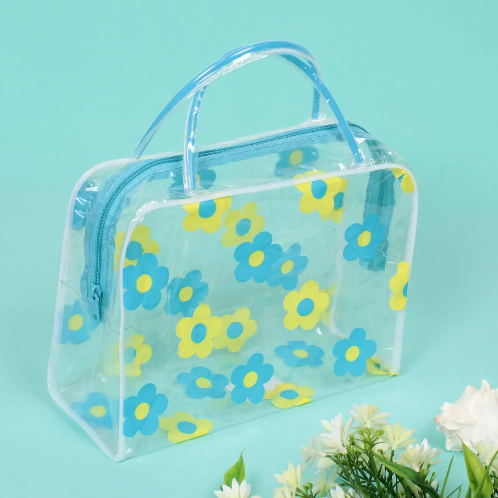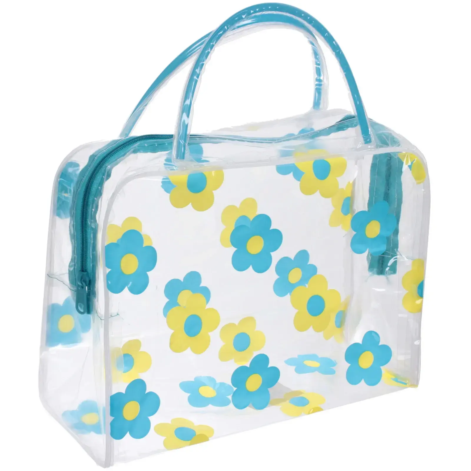 Косметичка «Adventure - Peas» с цветочным дизайном, голубая, 24x17 см, ПВХ