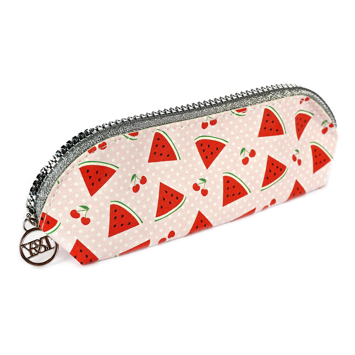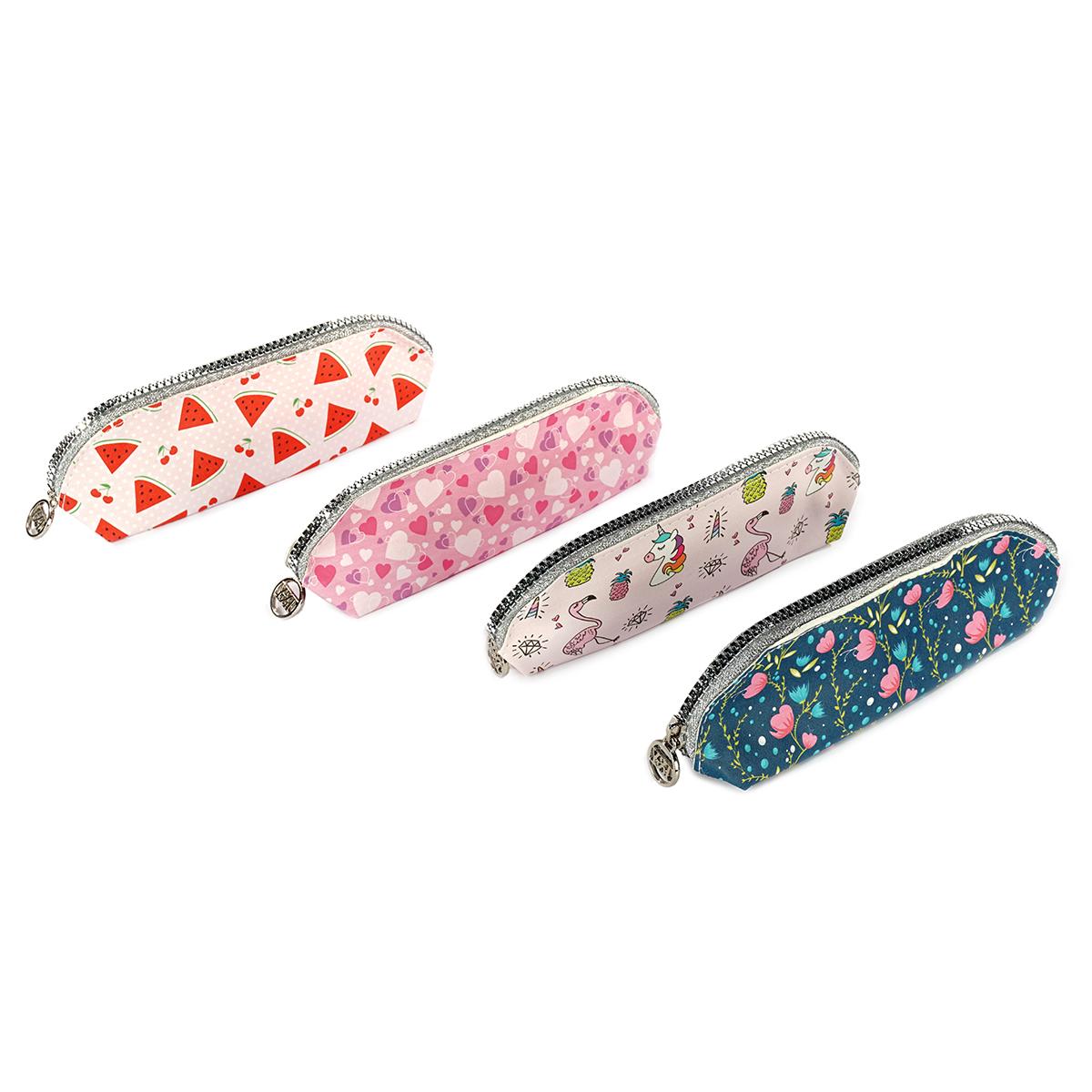 Косметичка для девочки, удобная и стильная, 17х6х5см, разноцветный принт: арбузы, фламинго, сердечки, цветы
