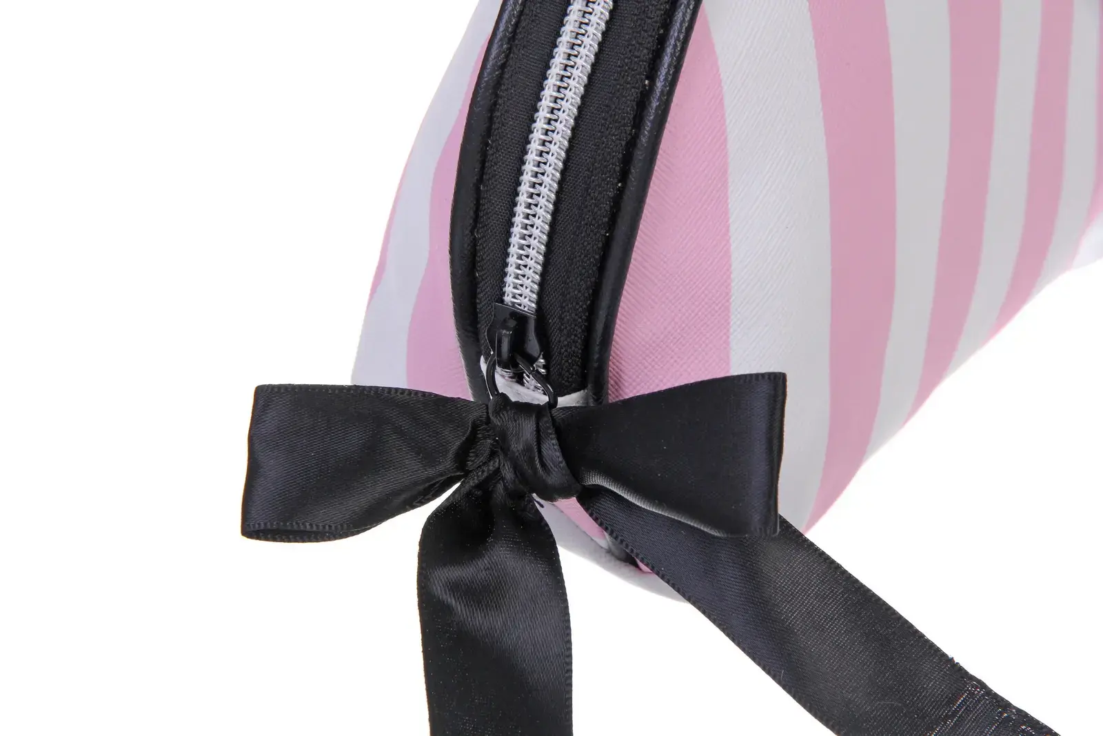 Косметичка выполнена из прочного ПВХ, что гарантирует её долговечность. Размеры 24х15х7 см делают её достаточно вместительной для хранения всех необходимых вещей, но при этом она остаётся компактной. Черный бантик и золотистая эмблема придают ей элегантный вид, что делает её отличным подарком для близких.