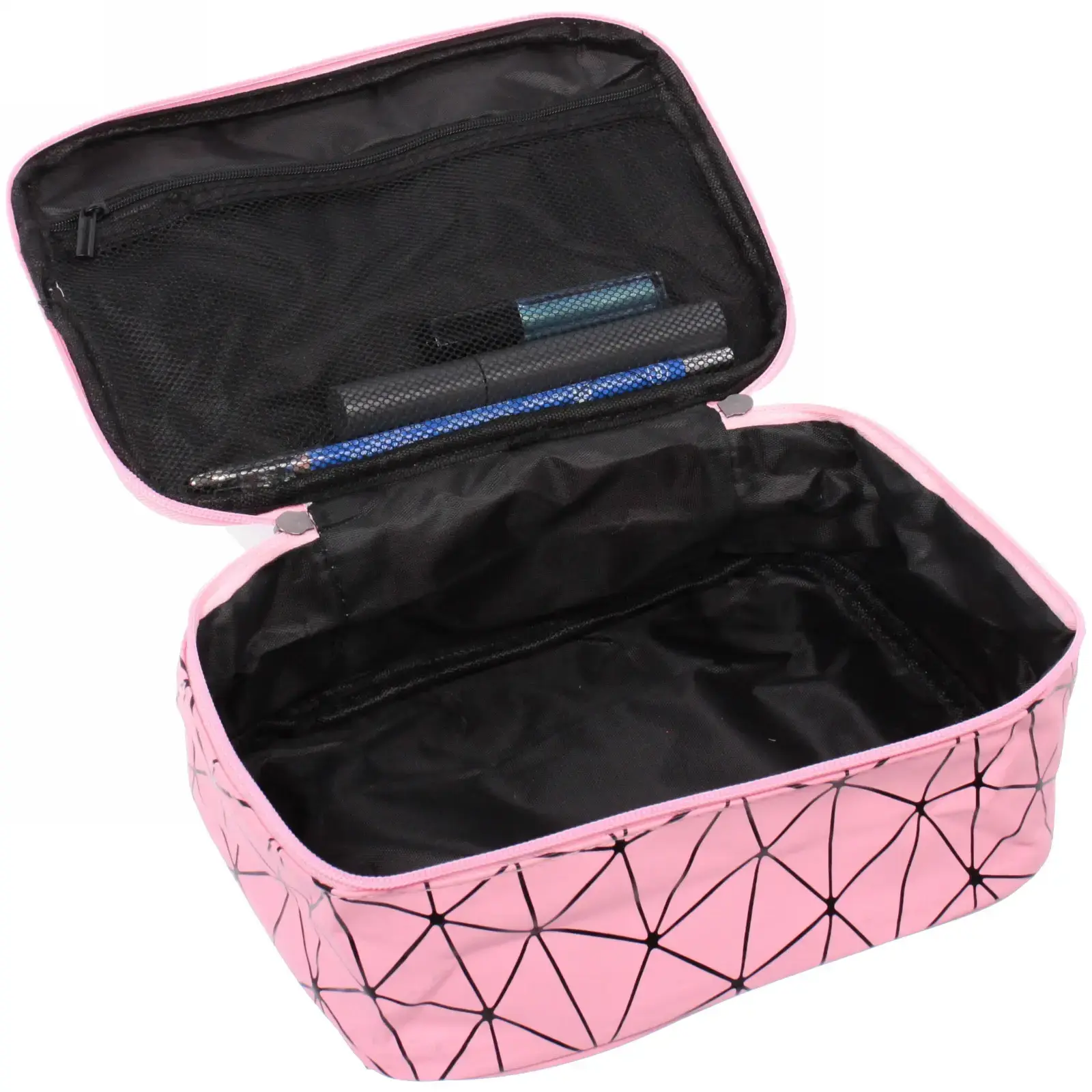 Практичная косметичка с геометрическим дизайном создана для тех, кто ценит порядок и мобильность. Идеально подходит для хранения косметики, аксессуаров и мелких предметов в путешествиях или повседневном использовании.
