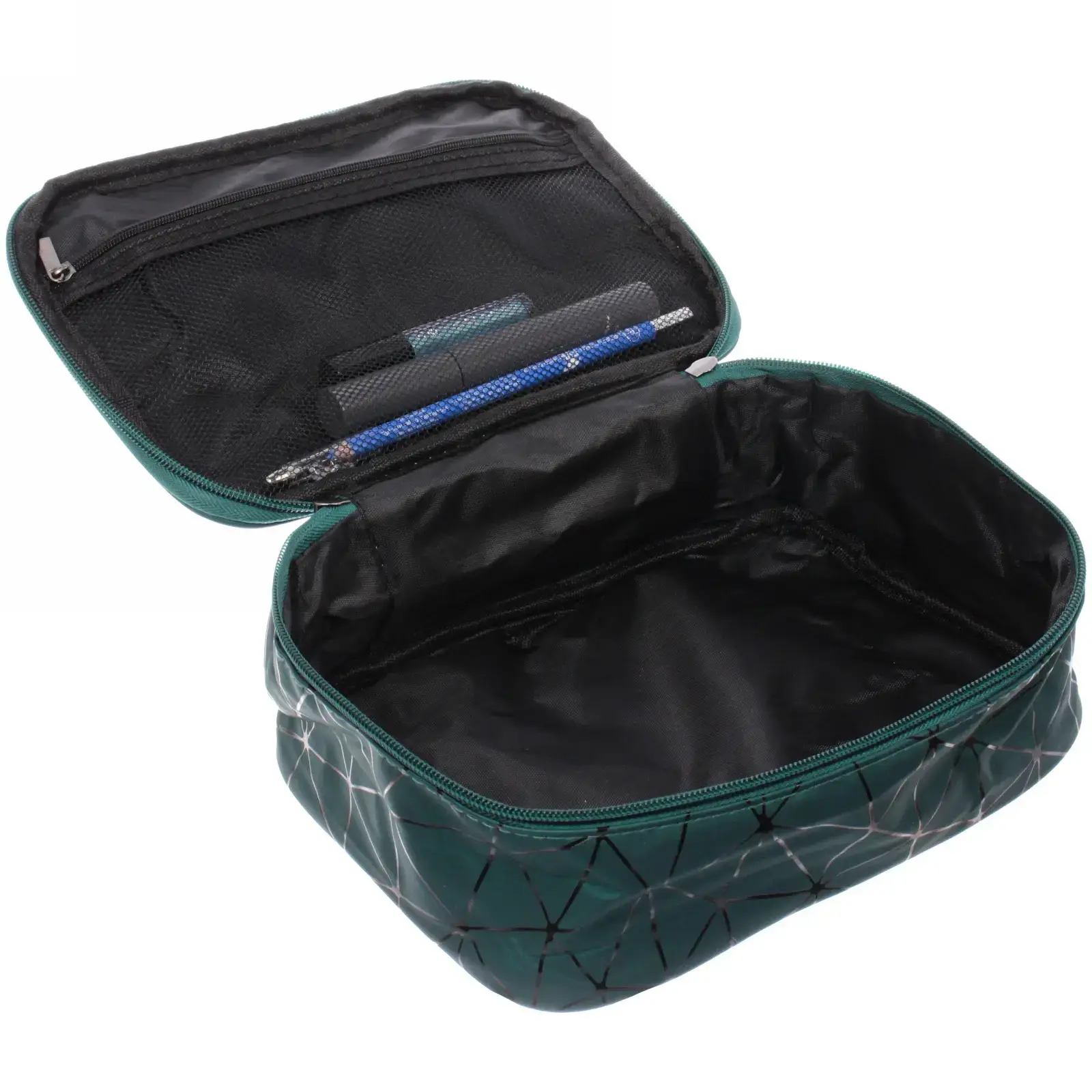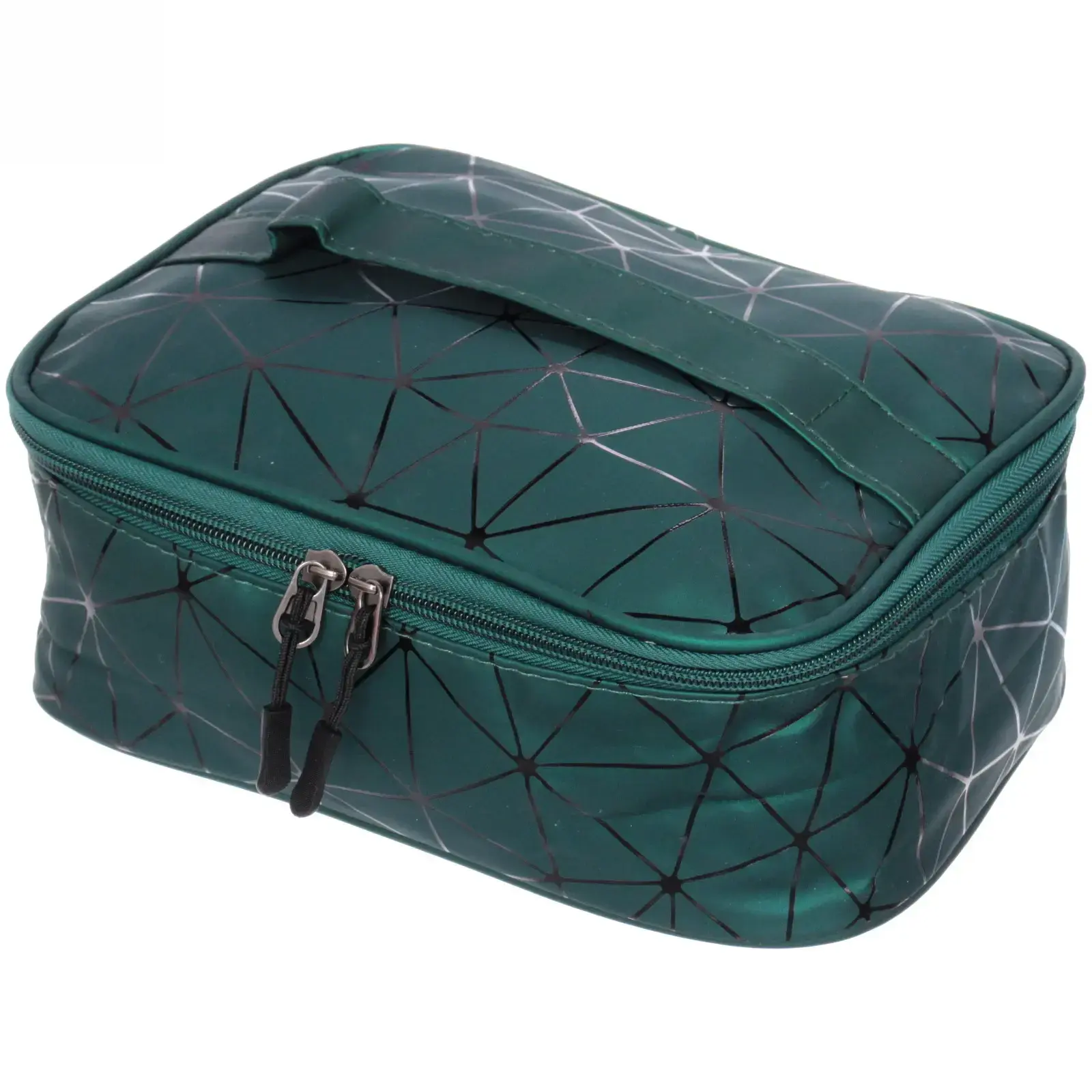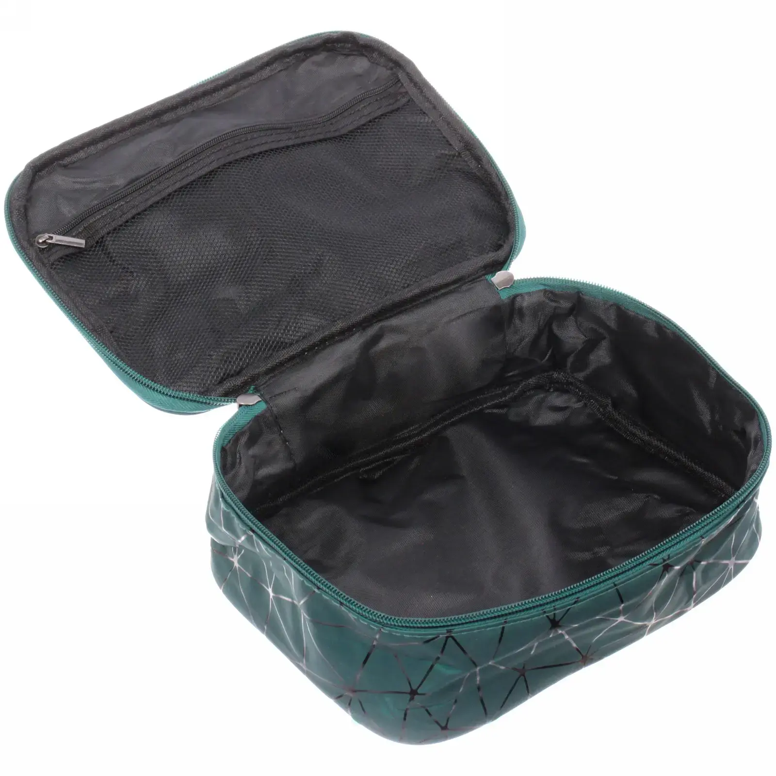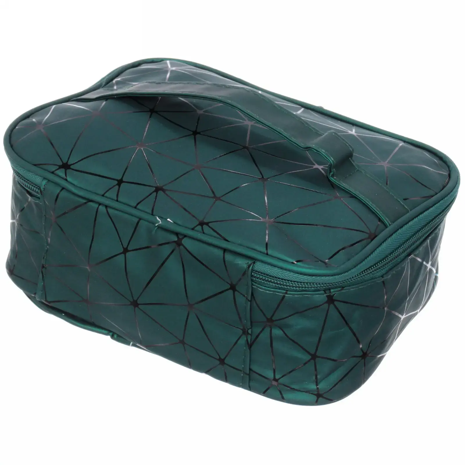 Косметичка-органайзер «Women secret», темно-зеленый, геометрический узор, водоотталкивающий текстиль, ручка