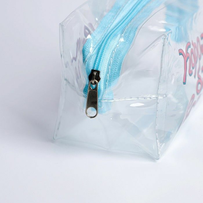 Косметичка выполнена в прозрачном цвете с голубым кантовым замком, что делает её универсальной для любого стиля. Надписи на пенале добавляют оригинальности и подчеркивают вашу индивидуальность. Не упустите возможность сделать свою жизнь более организованной и стильной с этой косметичкой!