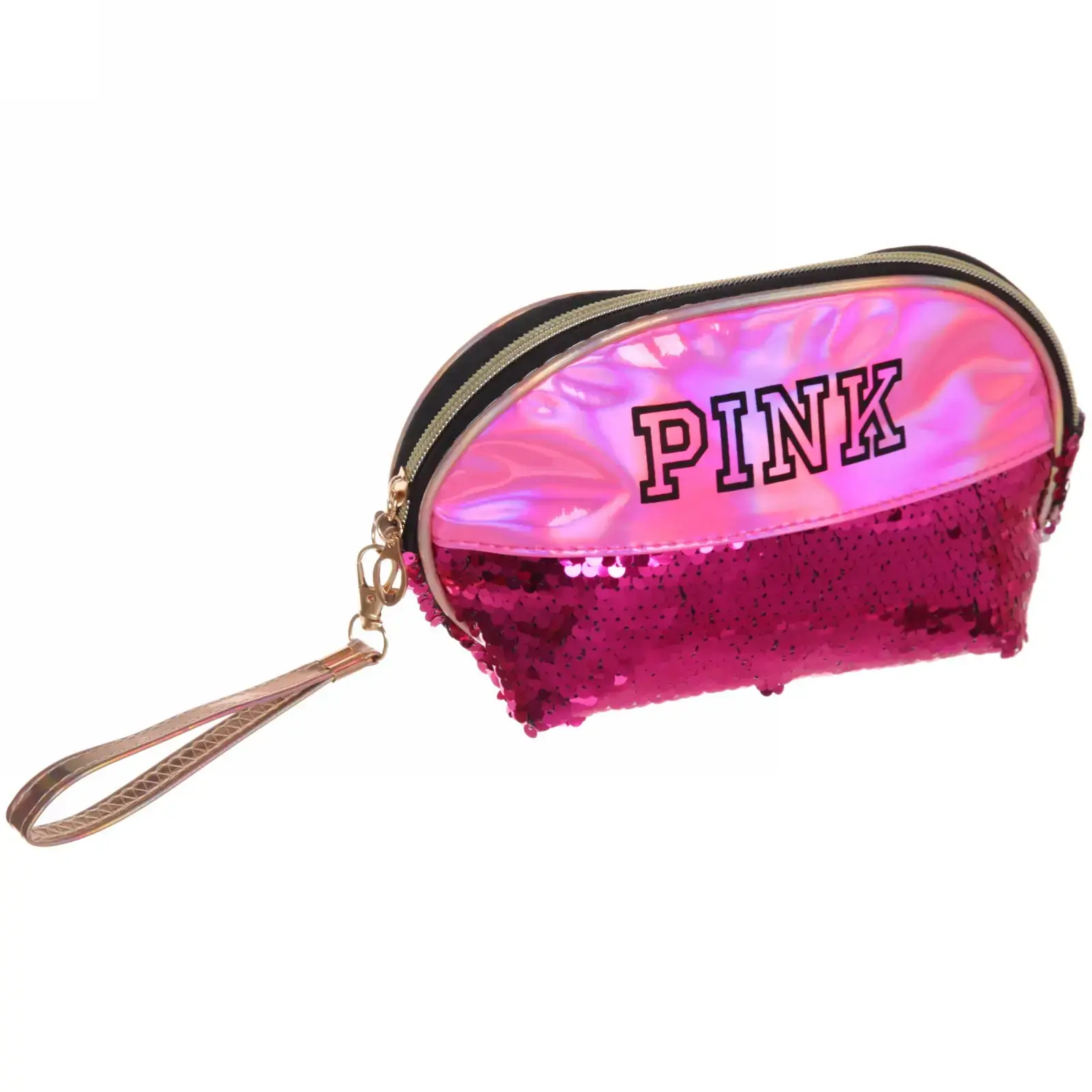 Косметичка «Pink» 22x7x14 см, ПВХ, розовая с пайетками, ручка для переноски
