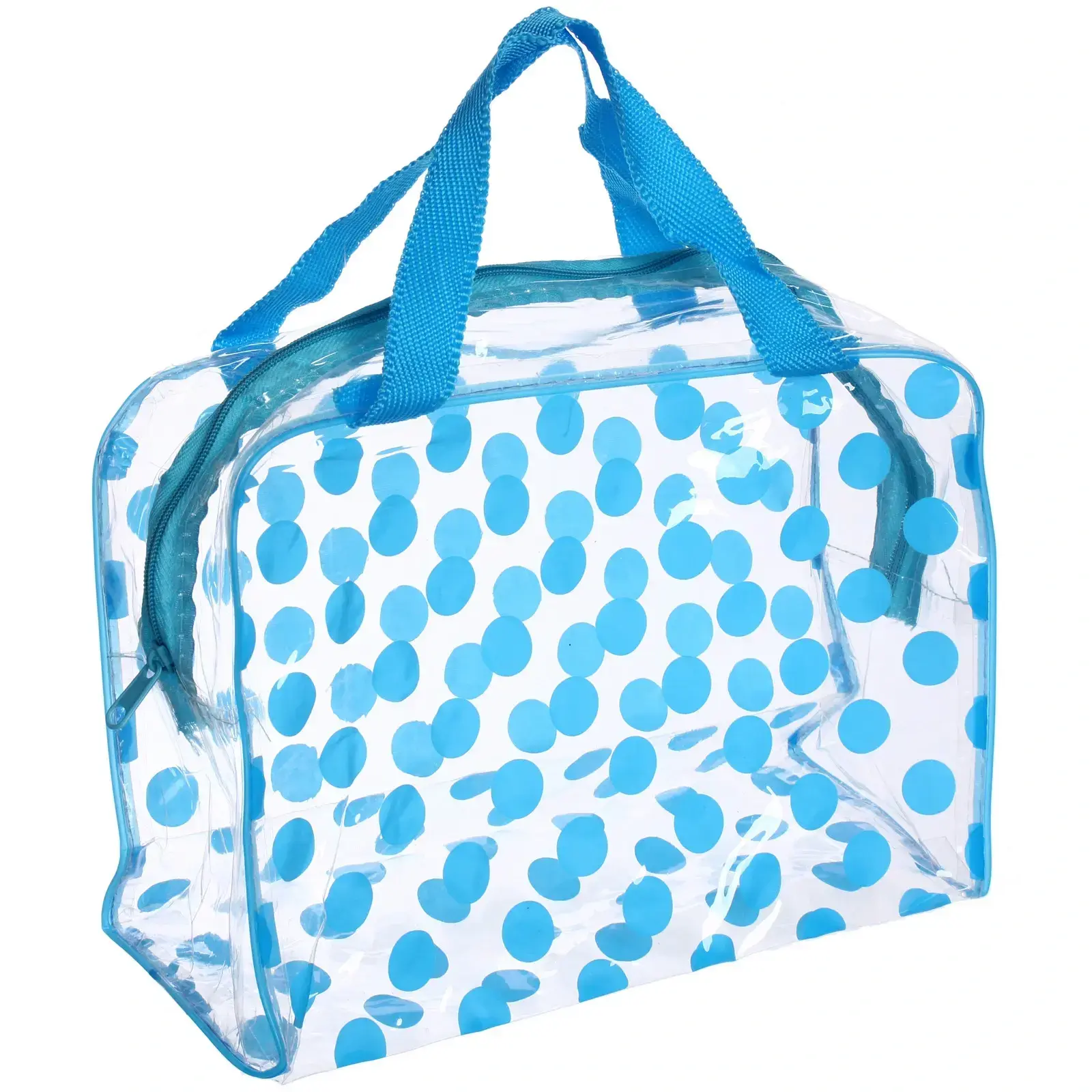 Эта косметичка станет вашим незаменимым помощником в организации пространства. Благодаря прозрачному материалу, вы всегда будете видеть содержимое, что значительно упрощает поиск необходимых вещей. Яркие голубые круги придают ей стильный и современный вид, а компактные размеры 16х23х9 см делают её идеальной для хранения косметики, туалетных принадлежностей или мелочей.