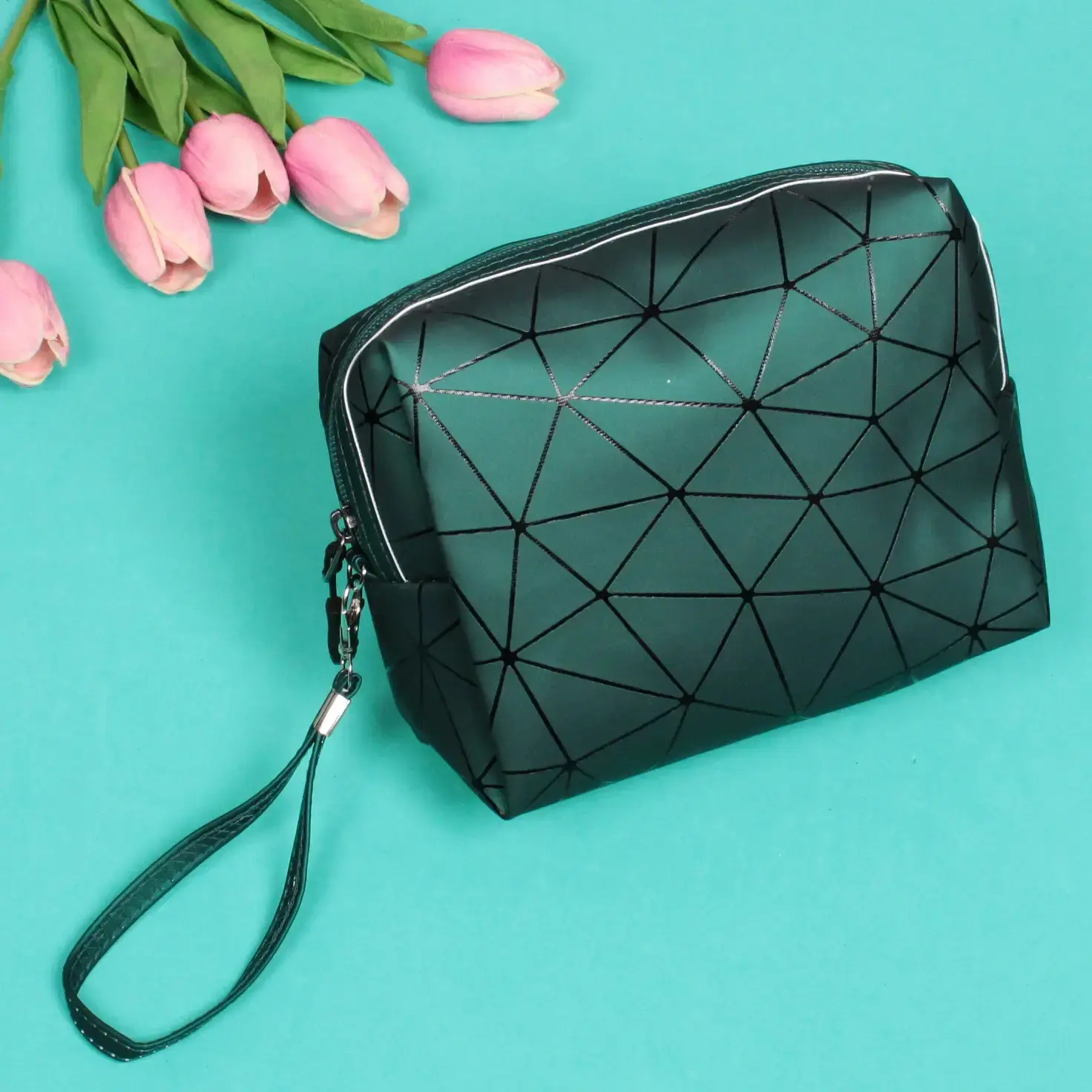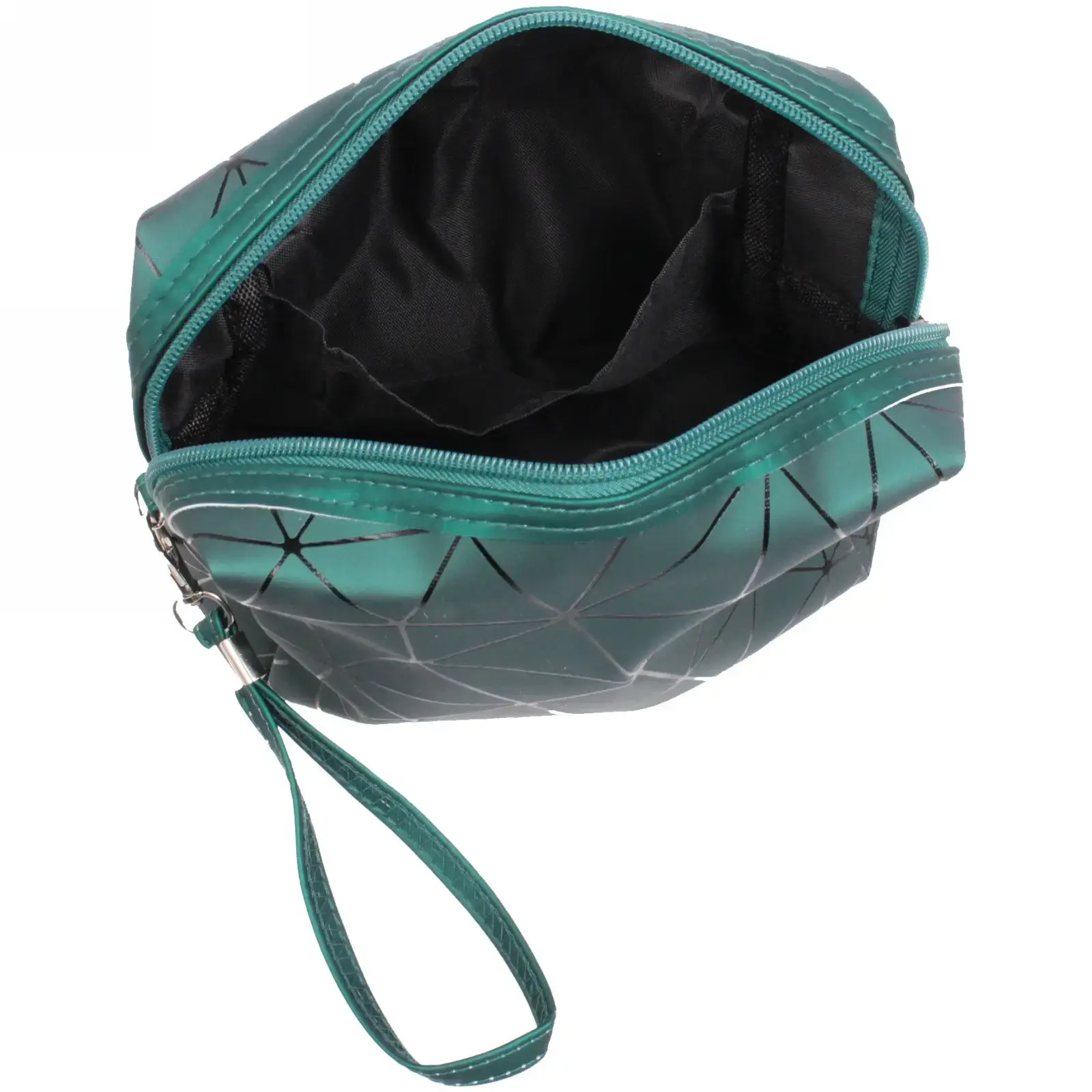 Эта косметичка станет вашим незаменимым помощником в организации косметических средств и мелочей. Яркий зеленый цвет с черным геометрическим узором придаст вашему образу стильный акцент, а компактные размеры 18х13х8 см позволят легко помещать ее в сумку или рюкзак. Благодаря качественному материалу ПВХ, косметичка не только выглядит привлекательно, но и обладает высокой прочностью, что гарантирует долговечность использования.