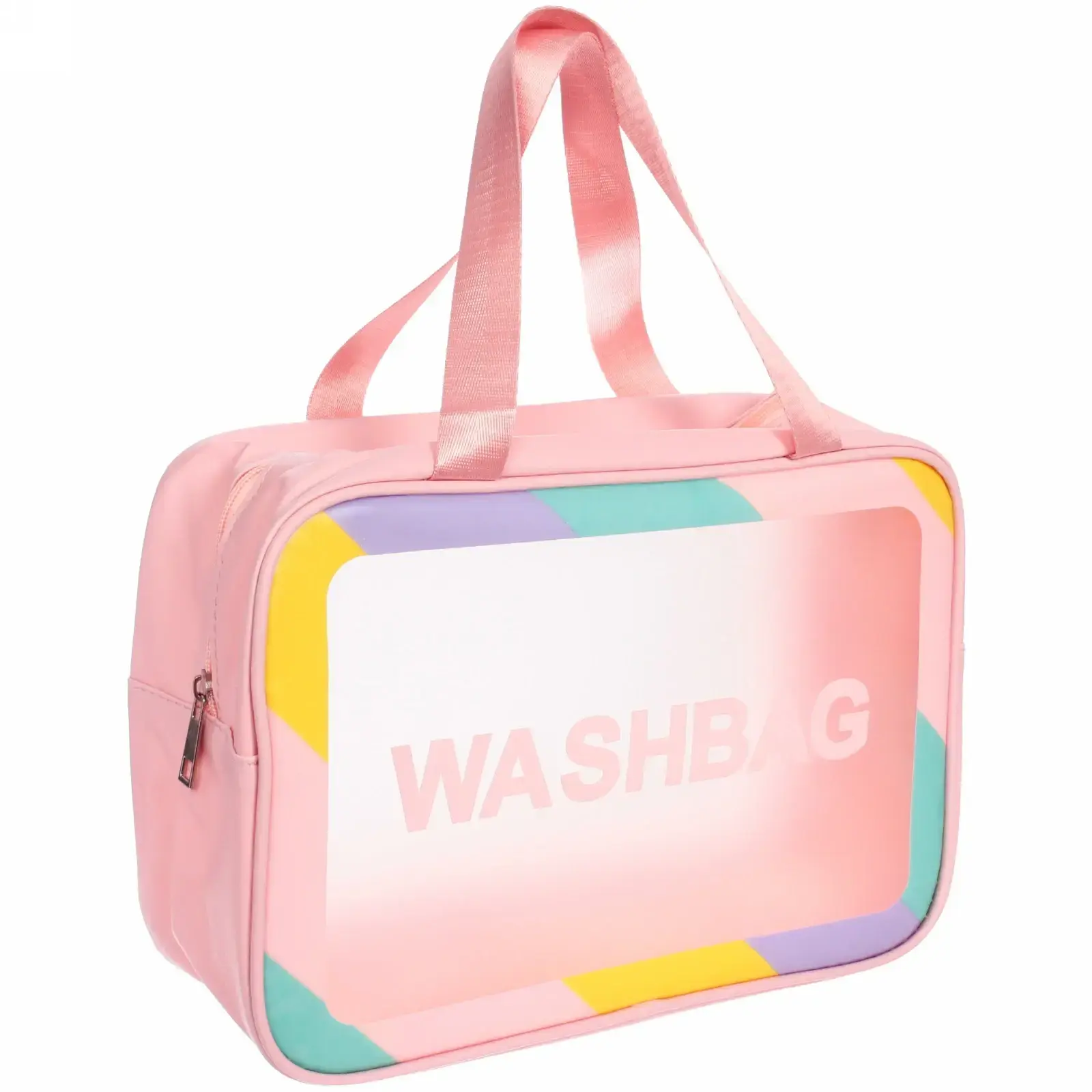 Изготовленная из водоотталкивающего полиуретана, косметичка защищает содержимое от влаги. Прозрачная передняя стенка позволяет быстро находить нужные вещи, а яркие цветные вставки добавляют оригинальности. Застежка на молнии обеспечивает надежное закрытие, а две текстильные ручки делают её удобной для переноски.