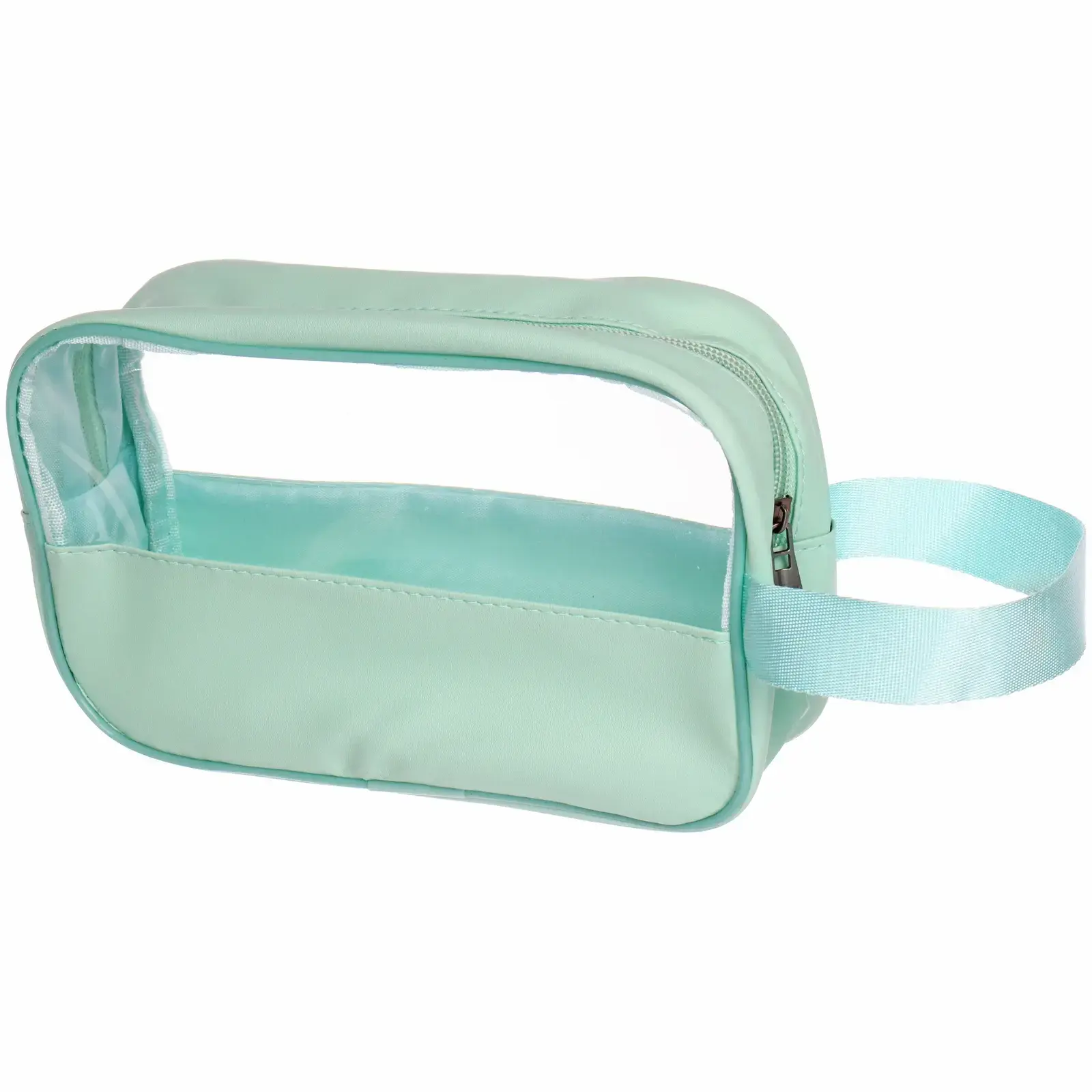 Размеры косметички составляют 21x12x7см, а длина боковой ручки — 18см, ширина 2,5см. Застёжка-молния по периметру верхней грани обеспечивает удобный доступ ко всему содержимому. Отгружается один товар, цвет определяется случайным образом в рамках мятного оттенка.