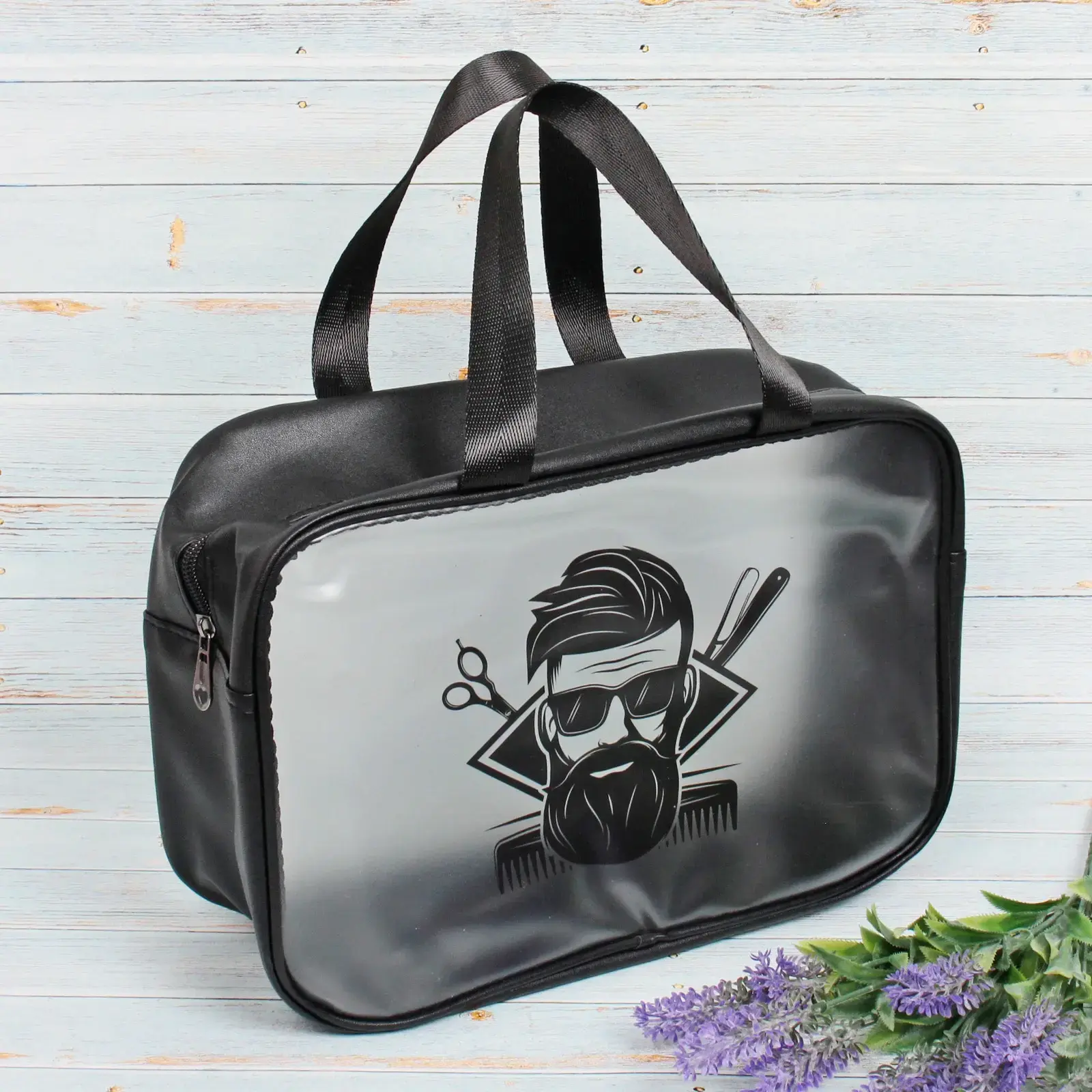 Стильная косметичка 'Для него' станет незаменимым помощником для профессионалов и любителей ухода за собой. Прозрачная передняя часть позволяет быстро найти нужный инструмент.