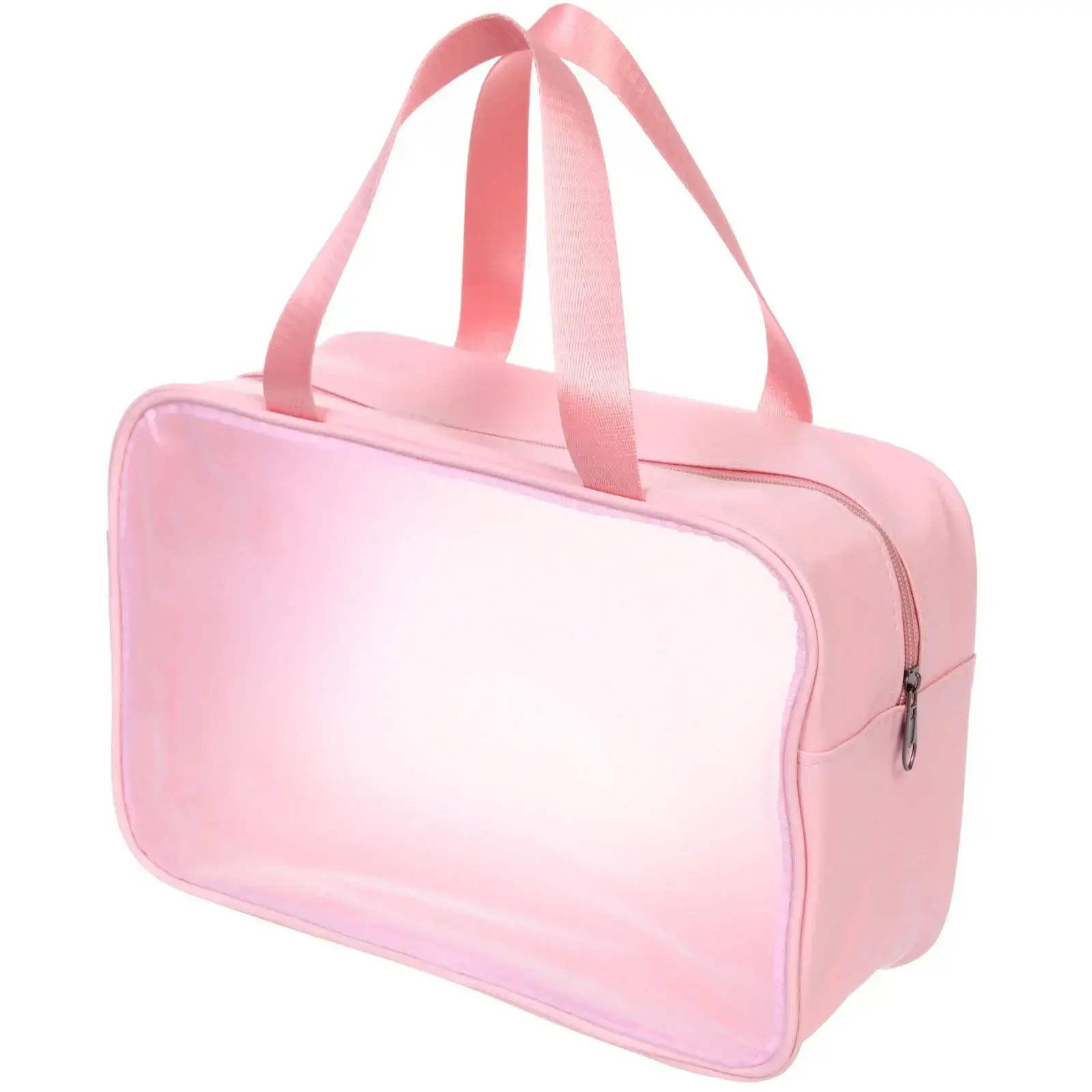 Косметичка имеет прямоугольную форму и размеры 21х31х12 см, что делает ее идеальной для хранения различных косметических средств, аксессуаров и мелочей. Она оснащена двумя удобными ручками для переноски и застежкой-молнией, что обеспечивает надежное закрытие и легкий доступ к содержимому. Благодаря полупрозрачному материалу вы всегда будете видеть, что находится внутри, что экономит ваше время при поиске нужных вещей.