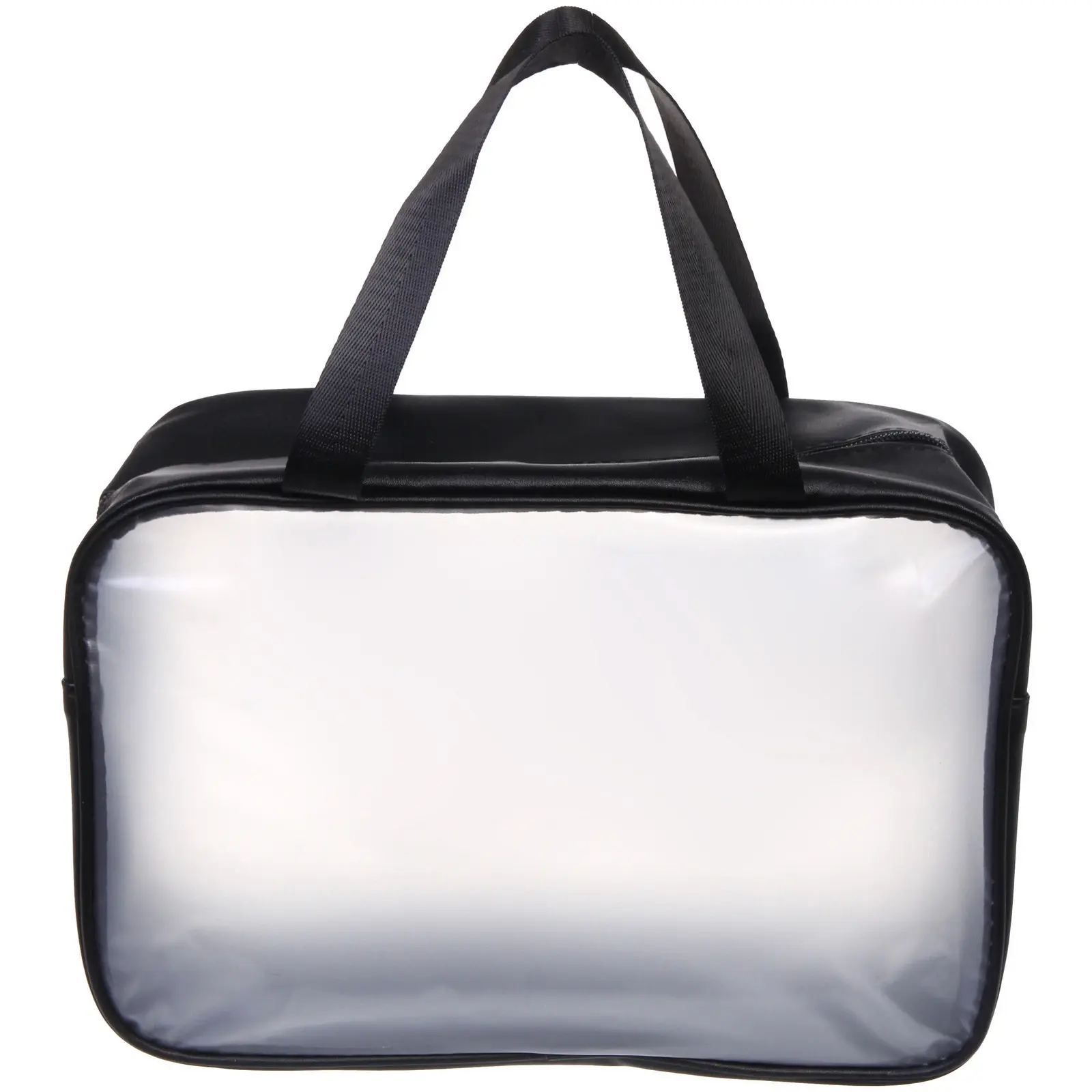 Косметичка выполнена из прочного ПВХ-материала, который легко чистится и защищает содержимое от влаги. Две удобные ручки обеспечивают комфорт при переноске, а застежка-молния надежно закрывает косметичку, предотвращая случайное открытие. Прозрачная часть позволяет быстро идентифицировать содержимое, что экономит ваше время.