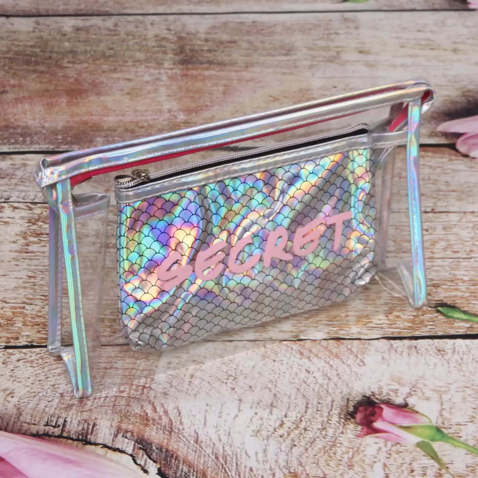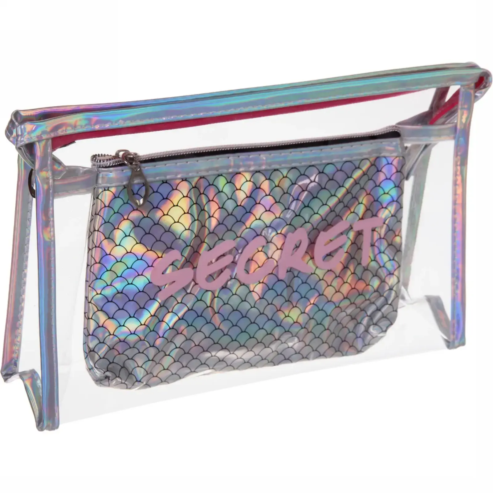 Косметички «Secret» подходят для хранения косметики, мелких предметов и аксессуаров. Их компактные размеры (25,5*7*16 см) позволяют легко помещать их в сумку или чемодан, а прозрачный материал дает возможность видеть содержимое без необходимости открывать каждую косметичку. Это особенно удобно в поездках, когда время на сборы ограничено.