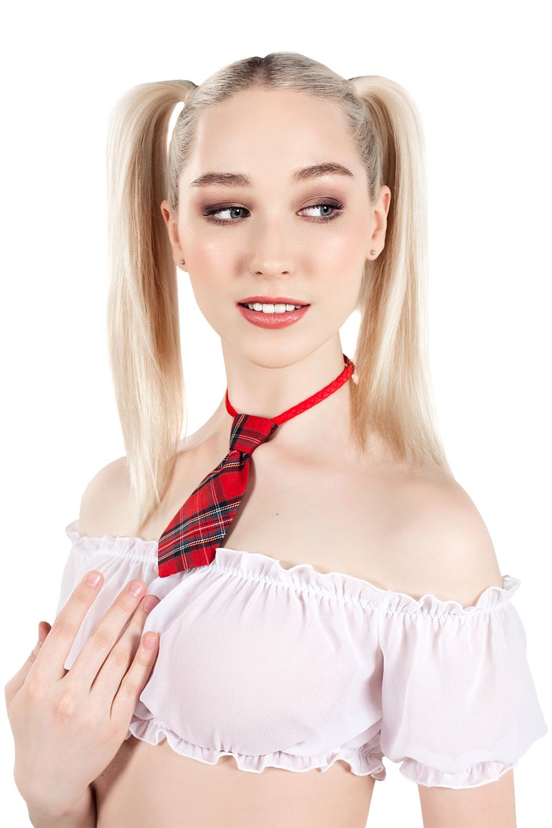 Костюм «американская школьница» — это эффектный верх для создания игривого и запоминающегося образа. Полупрозрачный укороченный топ мягко облегает фигуру, подчёркивая линию плеч и груди, а характерный галстук в красную шотландскую клетку добавляет образу дерзости и кокетства. Идеальный выбор для тех, кто хочет внести разнообразие в романтические вечера и почувствовать себя уверенно и раскованно.