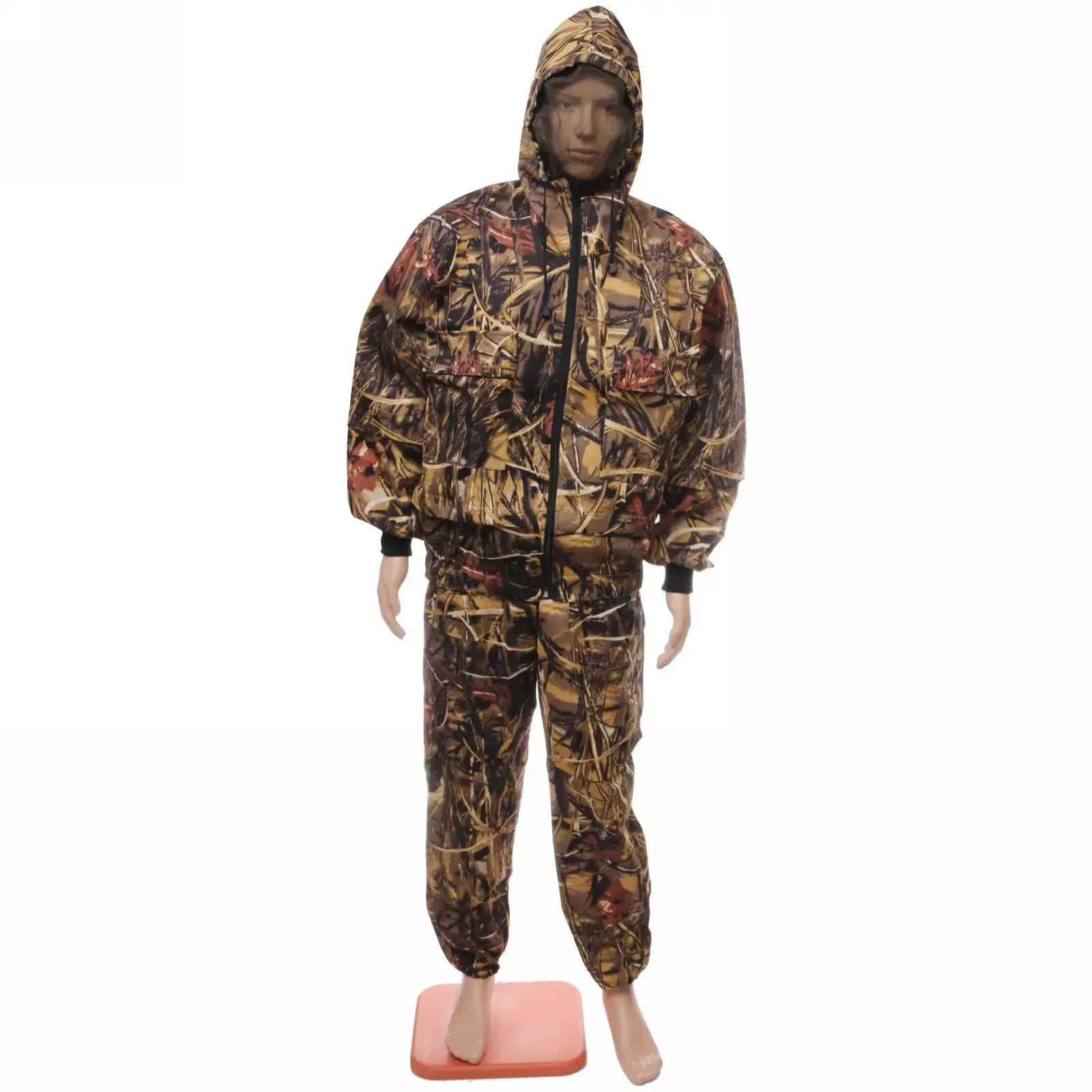 Камуфляжный рисунок трёх видов (коричнево-жёлтый, зелёный, красно-бежевый) обеспечивает маскировку в разных природных условиях. Лёгкий текстиль с повышенной износостойкостью позволяет свободно двигаться и сохраняет воздухообмен. Универсальный размерный ряд подходит для длительного ношения поверх другой одежды.