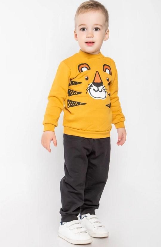 Костюм детский "Юлла" футер с начёсом, размер 110-116, жёлтый с принтом тигра, 100% хлопок