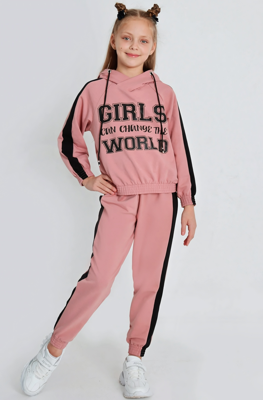 - Уникальный дизайн: Сочетание розового и черного цветов, стильные вставки и надпись "GIRLS CAN CHANGE THE WORLD" подчеркнут индивидуальность вашей девочки.