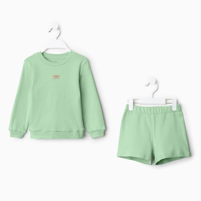 Костюм состоит из свитшота с длинными рукавами и круглым вырезом горловины, а также шорт с эластичным поясом и удобной посадкой. Мягкий и приятный на ощупь материал обеспечивает комфорт в течение всего дня. На свитшоте расположена небольшая текстильная нашивка с надписью "MINAKU KIDS", добавляющая образу изюминку.