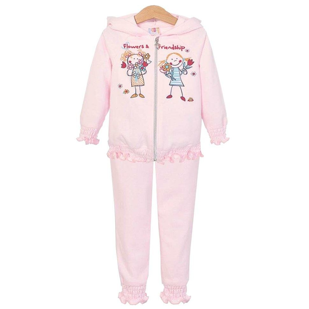 Костюм для девочки р.110, толстовка с молнией и брюки, принт 'Flowers And Friendship', 80% х/б