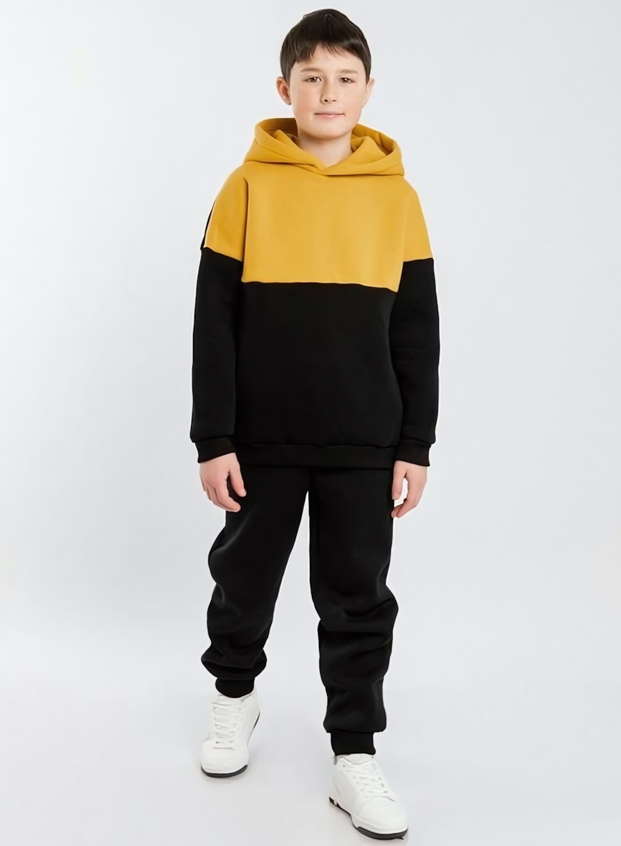 Костюм спортивный для мальчика 'Юлла' р.140-146, хлопок с начесом, желто-черный