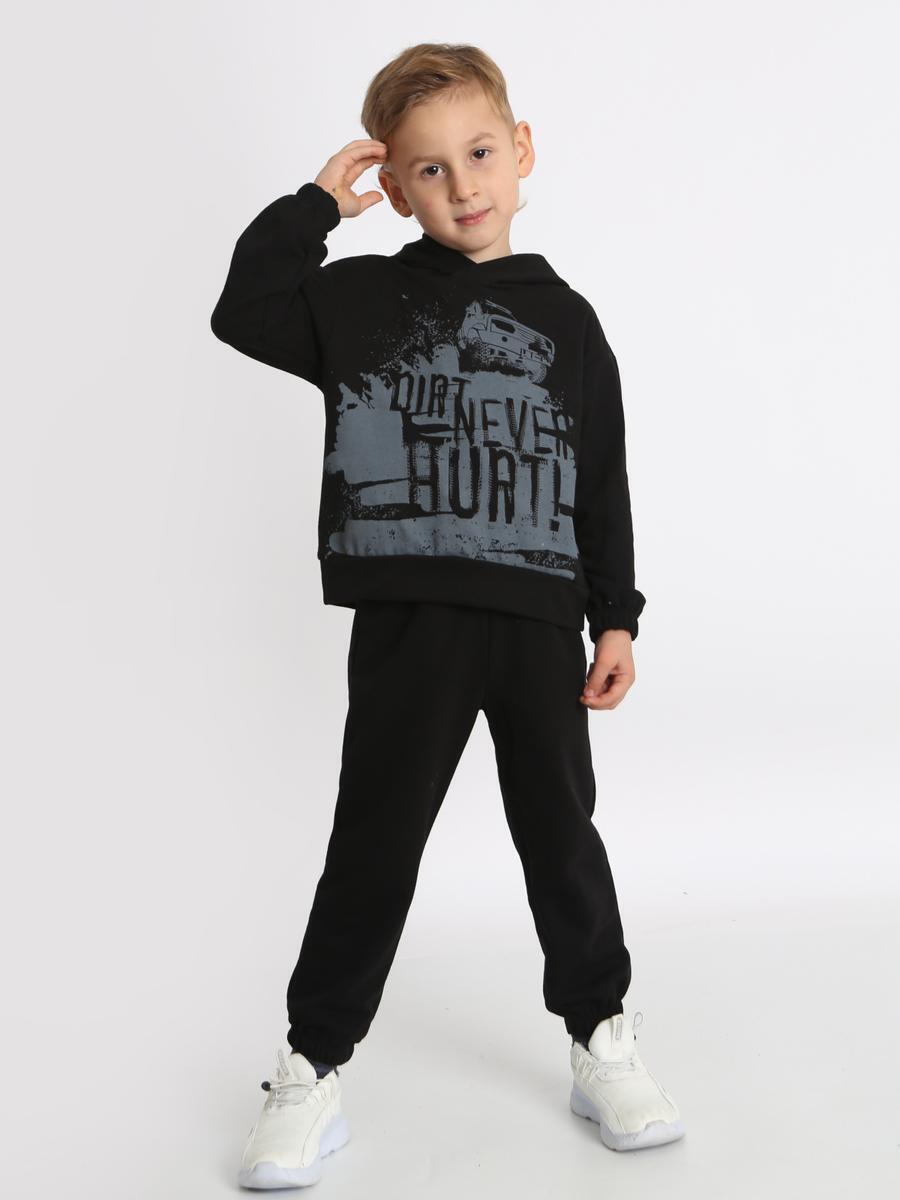 Костюм спортивный 'Плей-4' для мальчиков, черный, футер, 110
