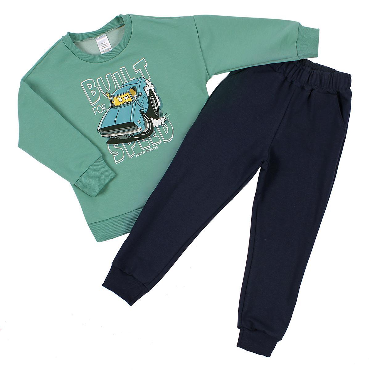 Костюм для мальчика 'Велик-1', р.128, шалфей/т.синий, футер петля