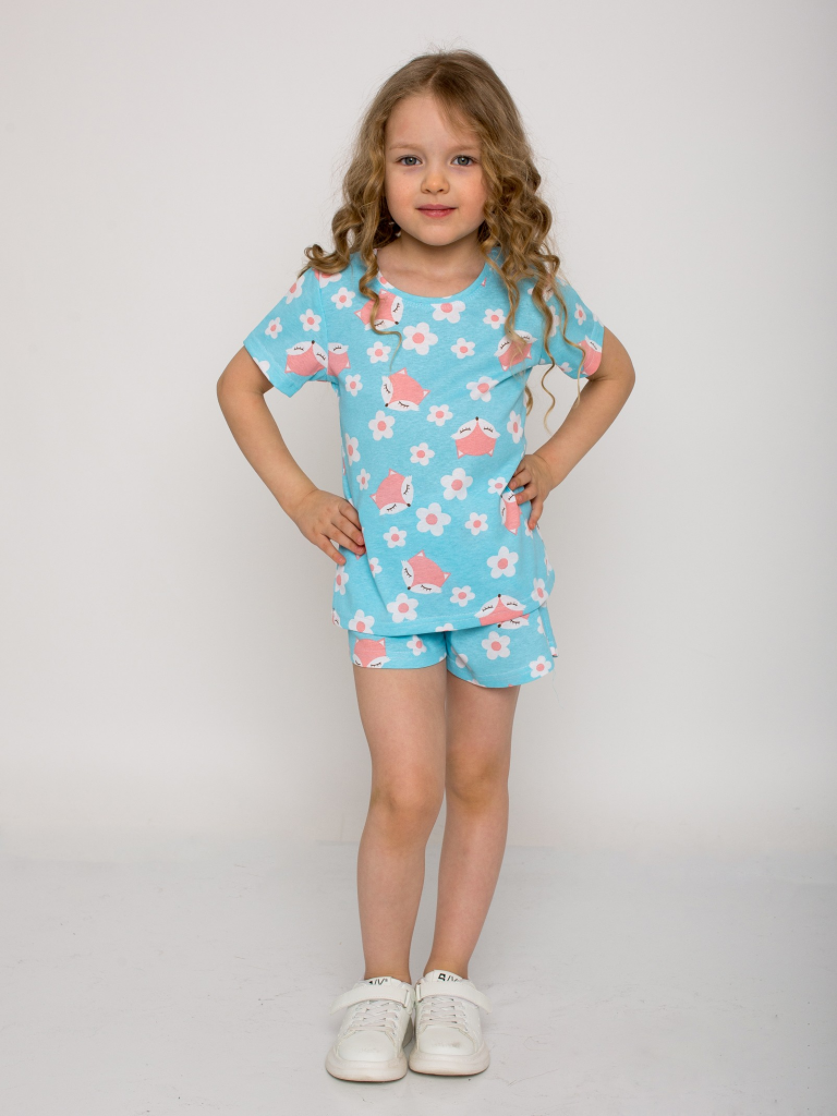 Костюм состоит из футболки прямого силуэта и шорт свободного кроя. Футболка имеет круглый вырез горловины и короткие втачные рукава, что обеспечивает легкость и удобство при носке. Шорты оснащены эластичной талией и карманами, что делает их практичными для активных игр и прогулок. Этот костюм идеально подходит для летних дней, когда ваш ребенок хочет чувствовать себя свободно и комфортно.