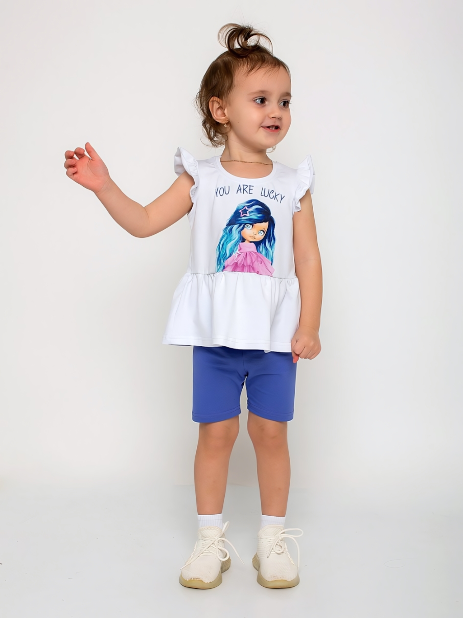 Костюм детский "Манго-1" с принтом «YOU ARE LUCKY», хлопок 92% с эластаном, белый/сиреневый, рост 134 см