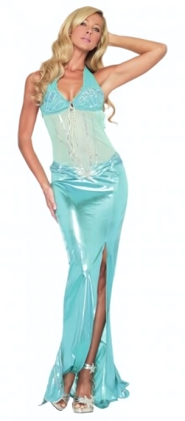 Костюм Русалочка идеально подходит для женщин, которые хотят выделиться на вечеринках, тематических мероприятиях или карнавалах. Открытые плечи и высокий разрез спереди добавляют сексуальности и игривости, а облегающий верх и расклешенная юбка подчеркивают фигуру, создавая эффектный силуэт.