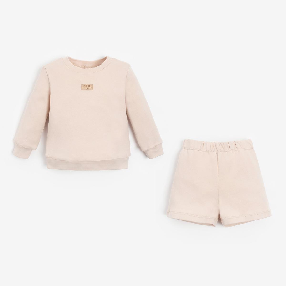 Костюм детский MINAKU, бежевый: свитшот и шорты, хлопок, размер 86-92 см