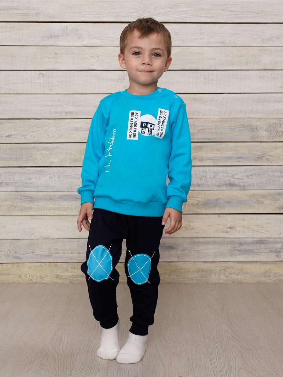 Костюм 'Счастливая малинка' р.86, верх бирюзовый/низ черный, 100% хлопок