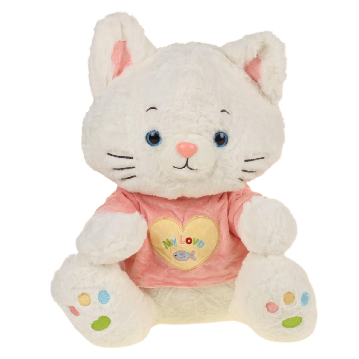 Этот очаровательный мягкий кот станет любимой игрушкой вашего ребенка или трогательным подарком для близкого человека. Его размеры 30x48x33 см идеально подходят для объятий.