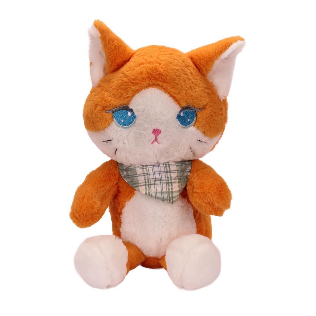 Мягкая игрушка кот «Hand» с клетчатой косынкой, оранжевый, 19x32x15 см, синтетический текстиль