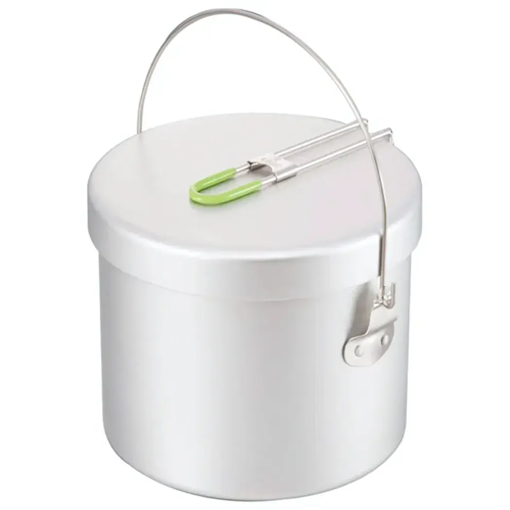 Алюминиевый сплав 1100 сочетает малый вес (всего 470 г) с повышенной прочностью. Толщина стенок 0.7 мм оптимальна для быстрого нагрева и устойчивости к механическим повреждениям. Овальная форма объёмом 6.5 л позволяет варить бульоны, каши и супы на компактной походной горелке.