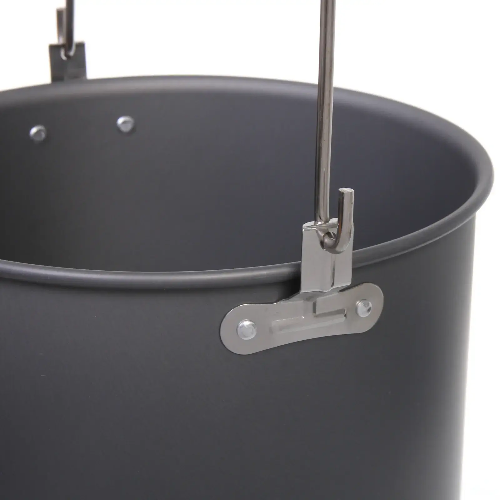 Приготовление пищи на природе стало проще и удобнее с нашим котелком объемом 8,5 литра. Этот алюминиевый котелок серого цвета не только легкий, но и прочный, что делает его идеальным выбором для кемпинга, пикников и походов. Благодаря своей компактной форме и удобной ручке, он легко помещается в рюкзак и не занимает много места.