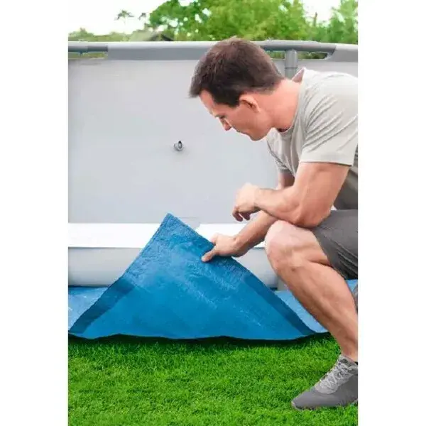 Достаточно просто убрать крупные предметы и камни с участка установки. Подстилка подходит для всех бассейнов диаметром до 457 см.
