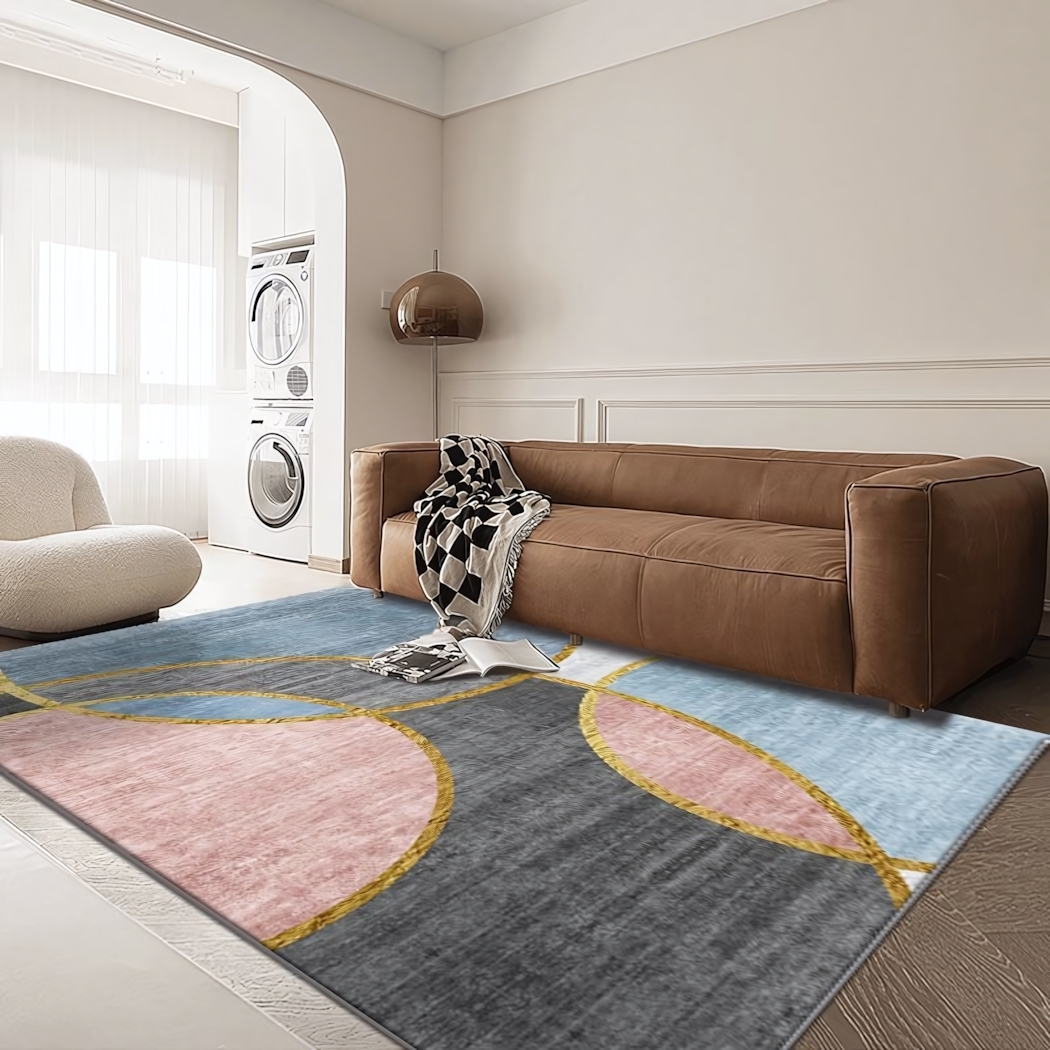 Благодаря мягкой текстуре и яркой декоративной отделке, этот коврик придает интерьеру уют и гармонию. Универсальный дизайн с абстрактным принтом делает его подходящим для различных стилей интерьера — от современного до классического.