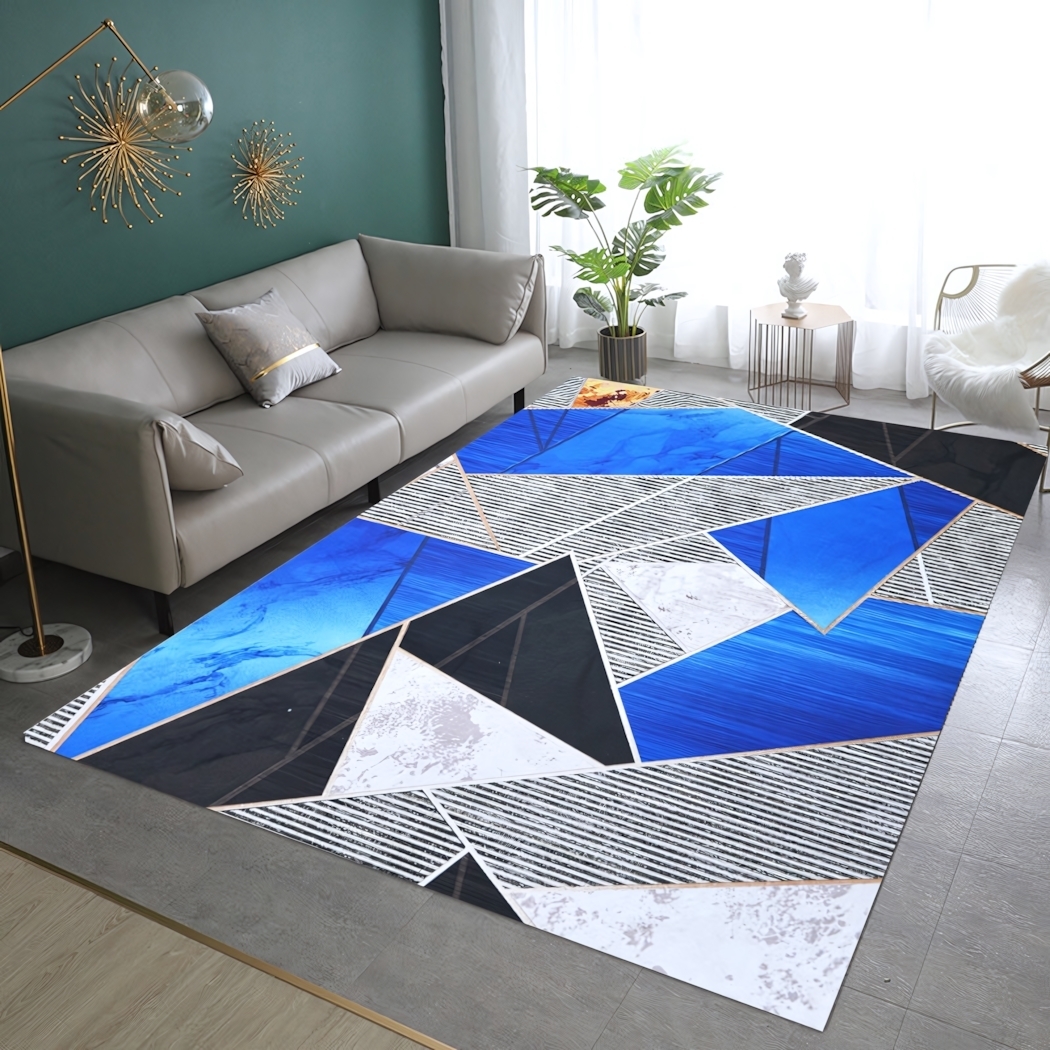 Преимущества данного ковра включают его устойчивость к износу, простоту ухода и эстетичный дизайн с геометрическими узорами, что делает его универсальным элементом декора. Материал основы – войлок с приятной на ощупь поверхностью, изготовленный из полиэстера, что обеспечивает эксплуатационную долговечность.