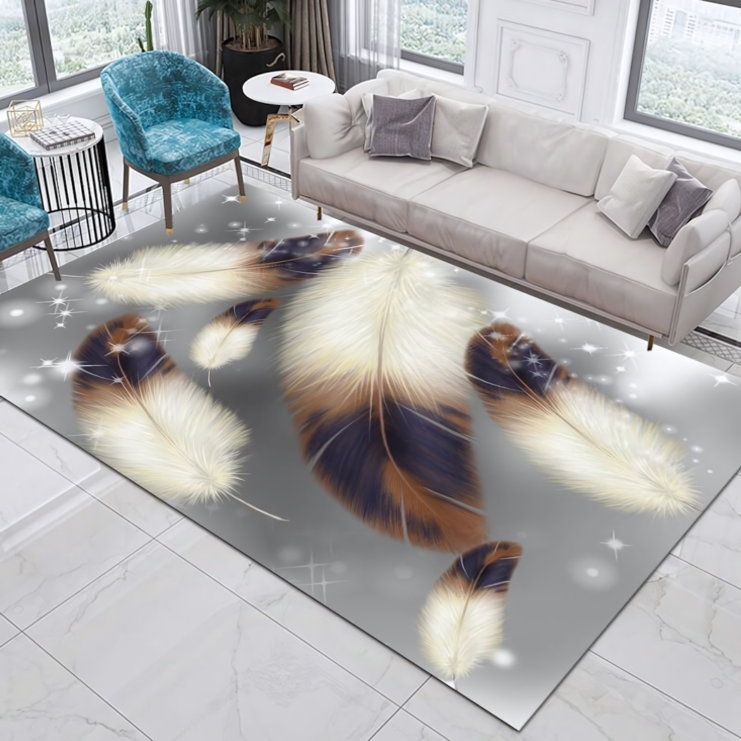 Создайте атмосферу уюта и комфорта с дизайнерским ковром, который станет центральным элементом вашего интерьера. Уникальный рисунок с изображением перьев добавит изысканности вашей гостиной.