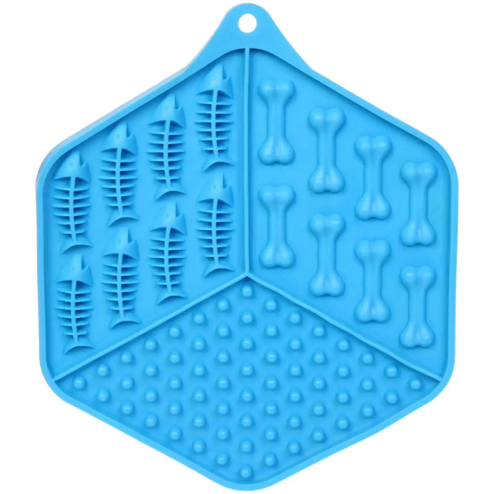 Коврик идеально подходит для домашних животных, которые склонны к беспокойству во время стрижки или визитов к ветеринару. Лизание помогает вырабатывать эндорфины, что способствует расслаблению и улучшению настроения вашего питомца. Этот коврик станет отличным решением для медленного кормления, что также положительно скажется на пищеварении вашего любимца.