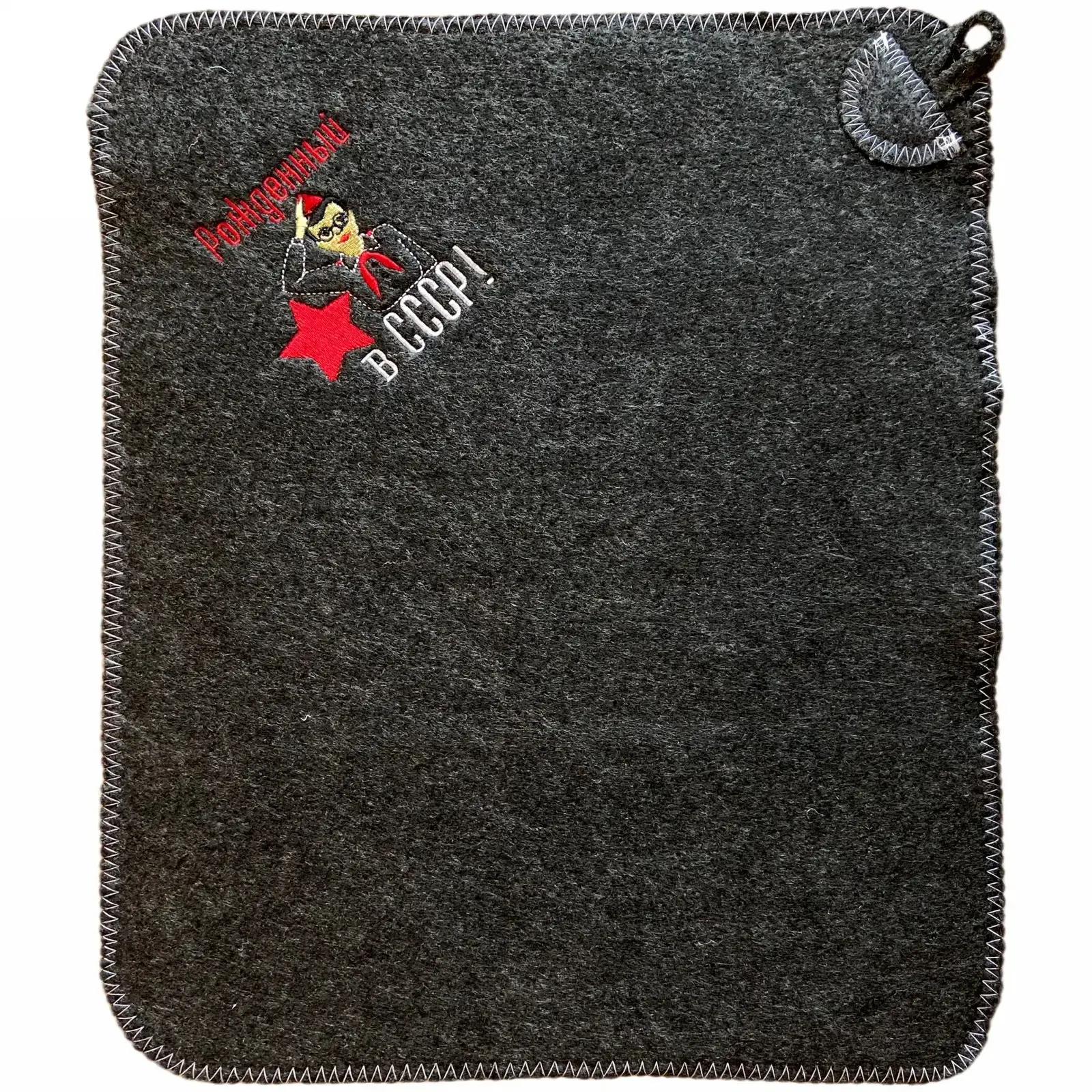 Коврик банный «Рожденный в СССР» с вышивкой, войлок, серый цвет, ручная работа