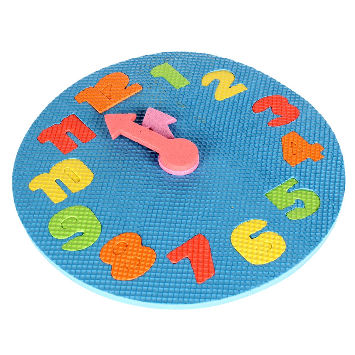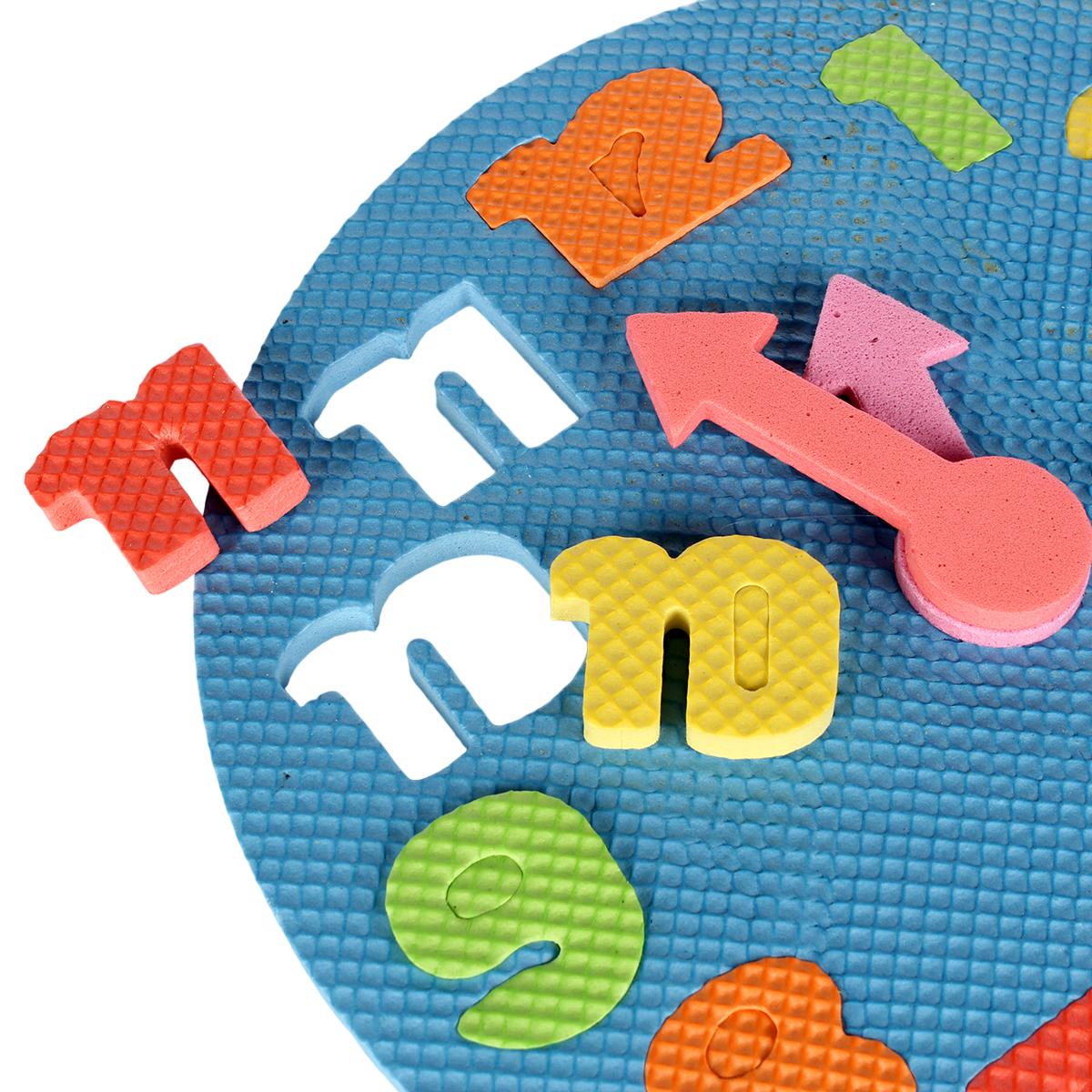 Часы изготовлены из качественного ПВХ, безопасного для детей. Толщина изделия 0,6 см обеспечивает удобство использования. Цветные цифры от 1 до 12 выполнены в контрастных оттенках для лучшей визуализации.