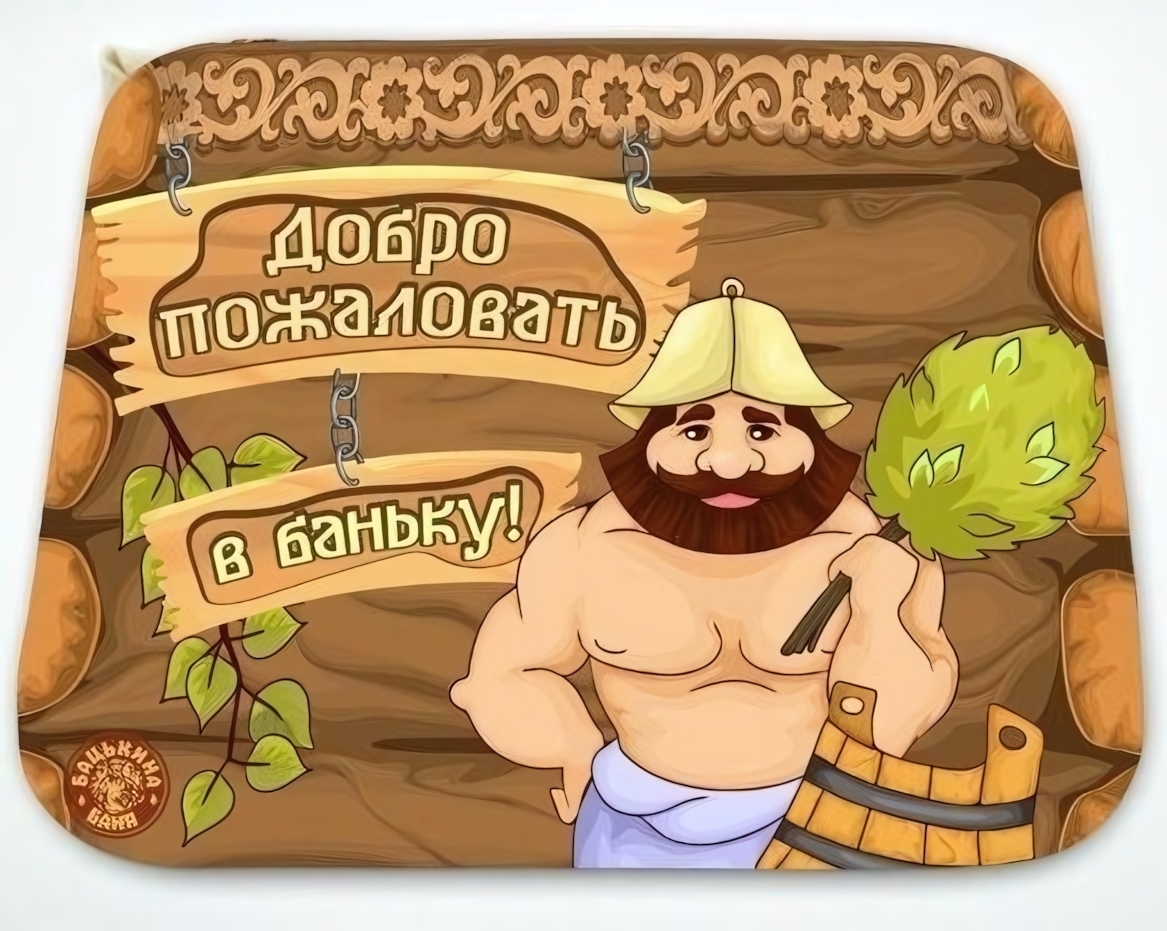 Размер коврика составляет 40х50 см, что позволяет удобно разместить его в любом месте. Яркая печать с текстом «Добро пожаловать в баньку!» добавляет индивидуальности и создает приятное первое впечатление. Этот коврик станет отличным подарком для любителей банного отдыха.