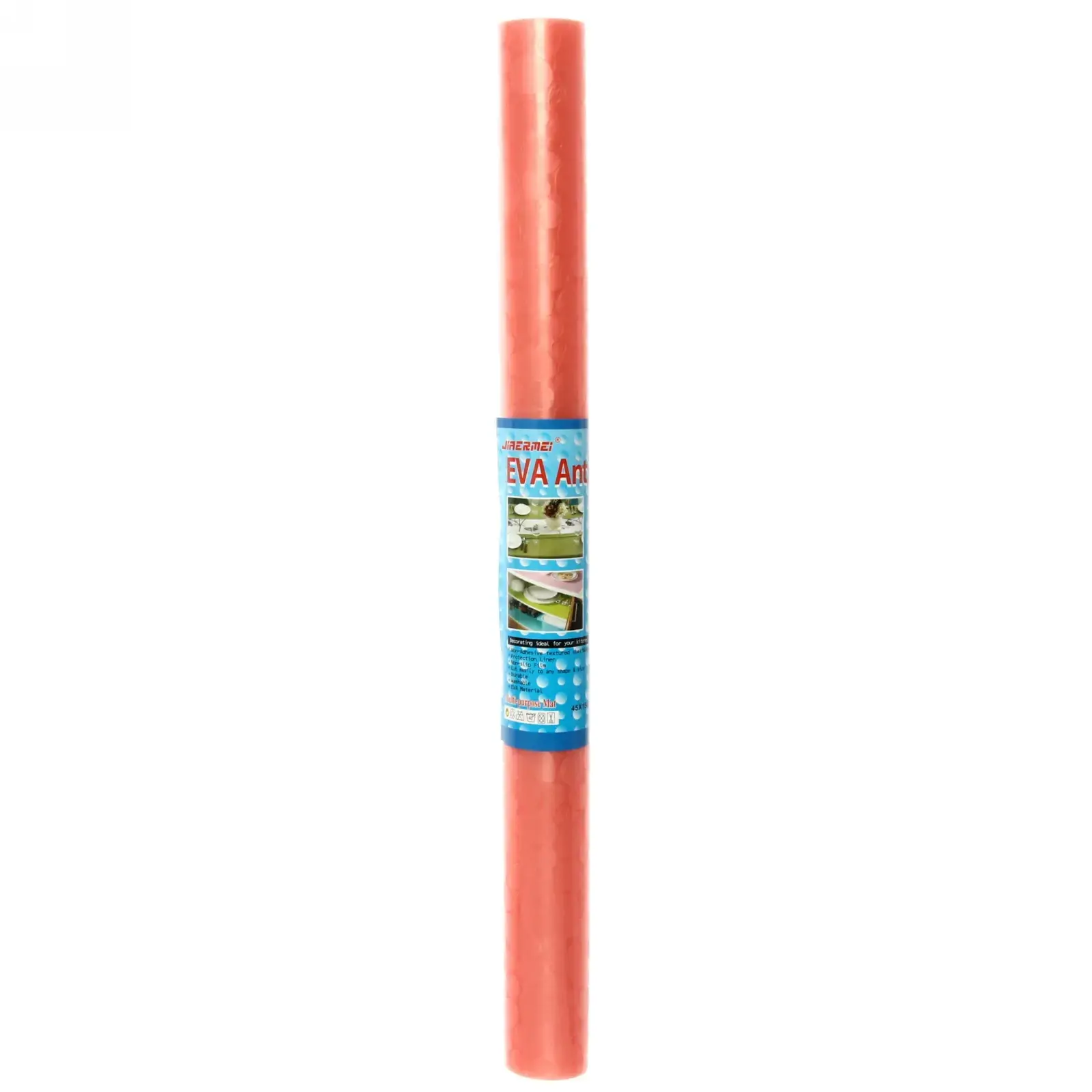 Коврик изготовлен из качественного ПВХ, что обеспечивает его долговечность и устойчивость к влаге. Его коралловый цвет добавляет яркости и свежести в ваш кухонный интерьер. Размер 45х150 см позволяет использовать его в различных ящиках, а возможность подрезки делает его еще более удобным.