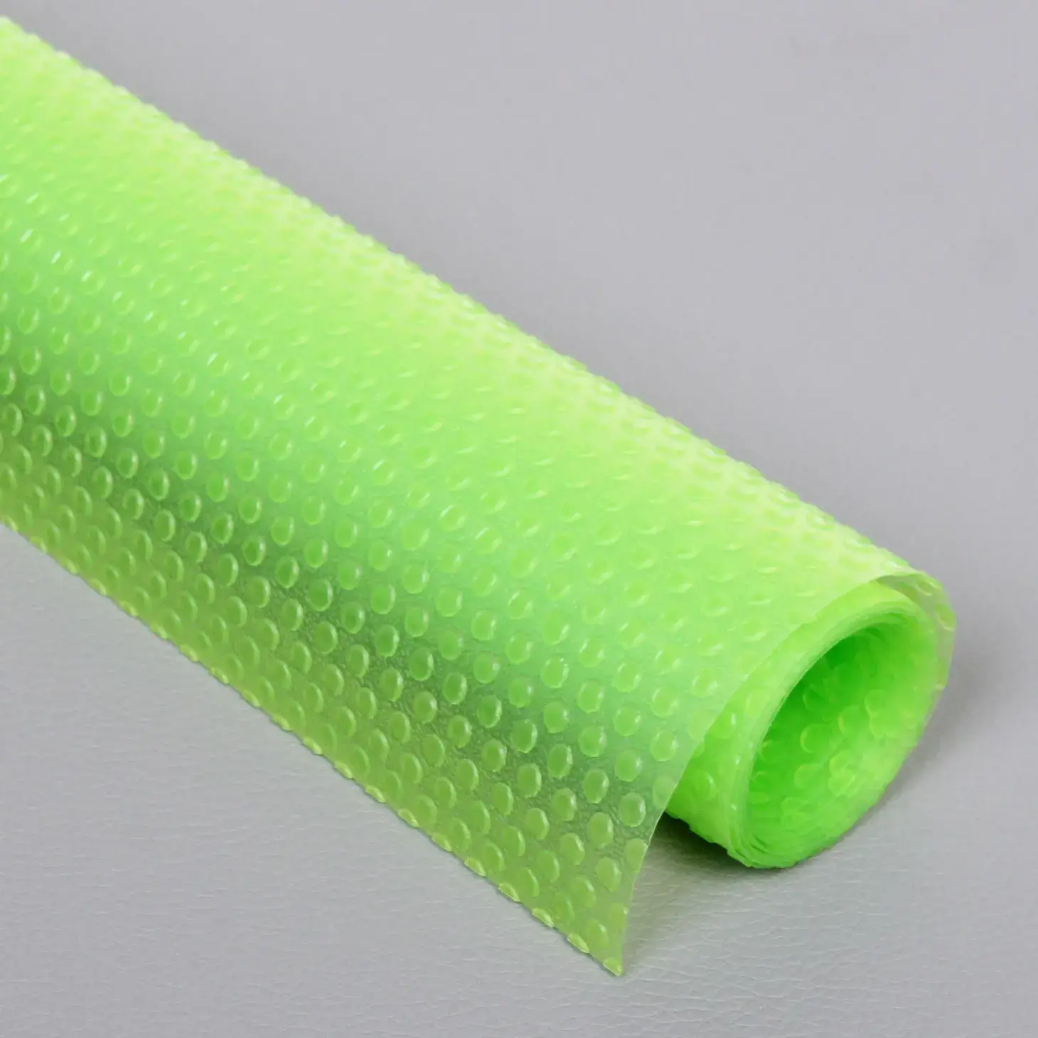 Коврик поставляется в рулоне размером 45х90см, что позволяет легко нарезать нужные размеры под ваши ящики. Ярко-зеленый цвет добавит свежести вашей кухне, а практичные свойства материала обеспечат комфорт в использовании.