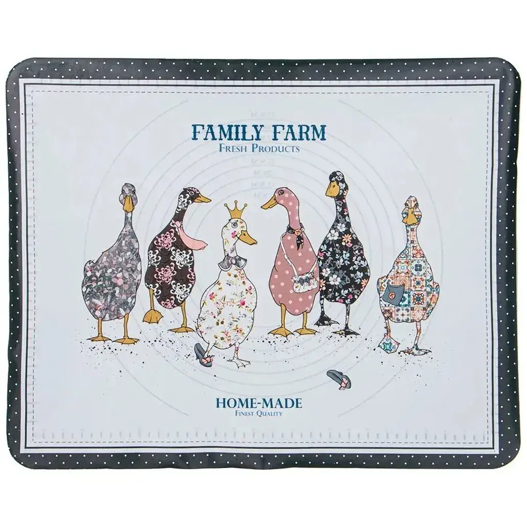 Силиконовый коврик с антипригарным покрытием превратит процесс готовки в удовольствие. Практичная разметка и оригинальный дизайн с утками создают атмосферу уютной семейной фермы прямо на вашей кухне.