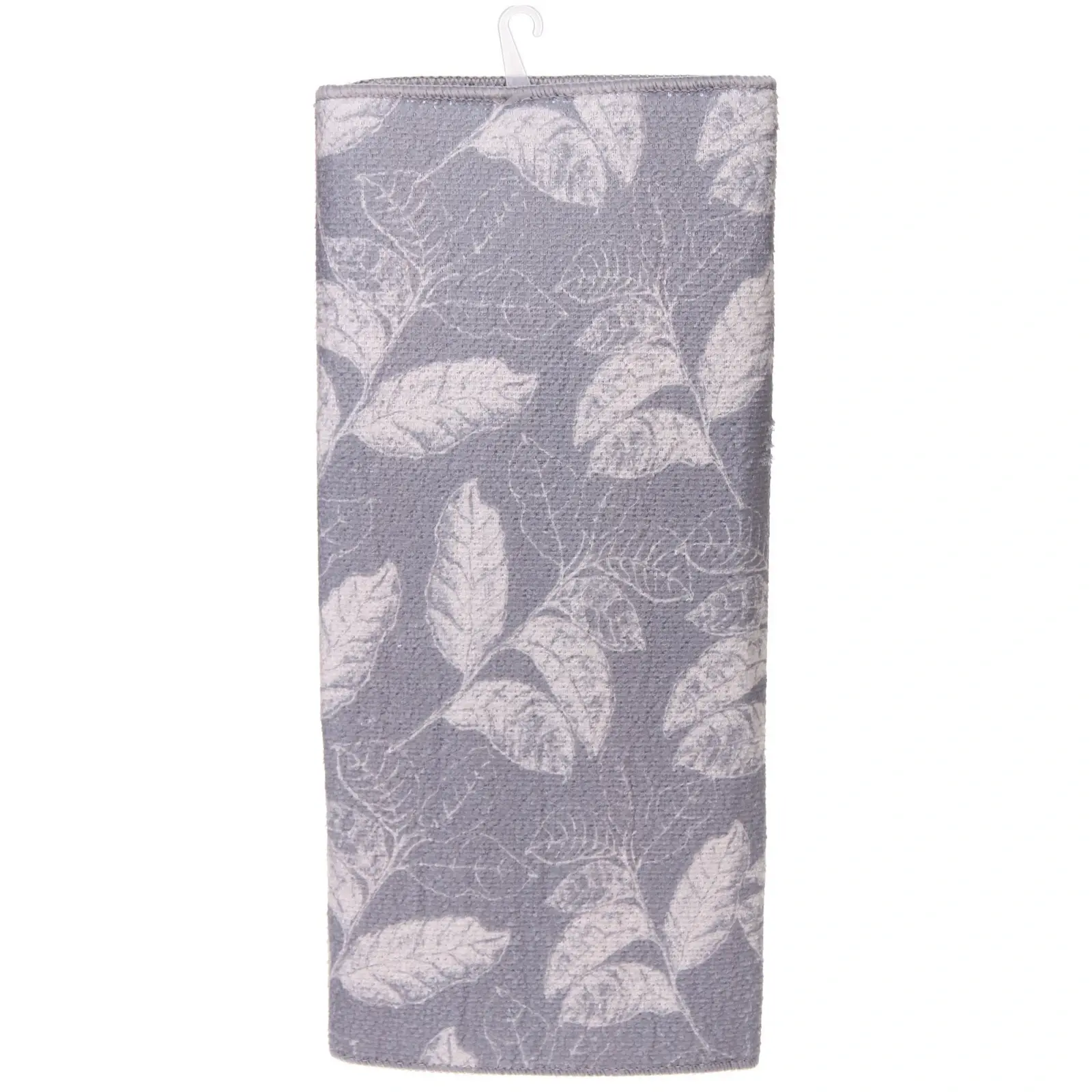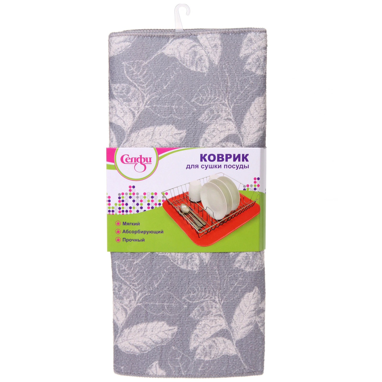 Коврик для сушки посуды 38*50см, серый/белый, "Листья", мягкий и абсорбирующий