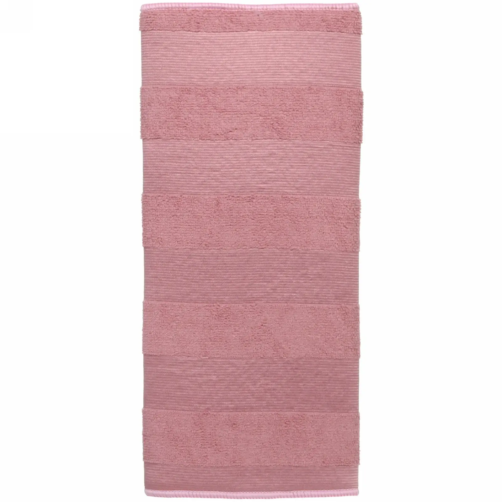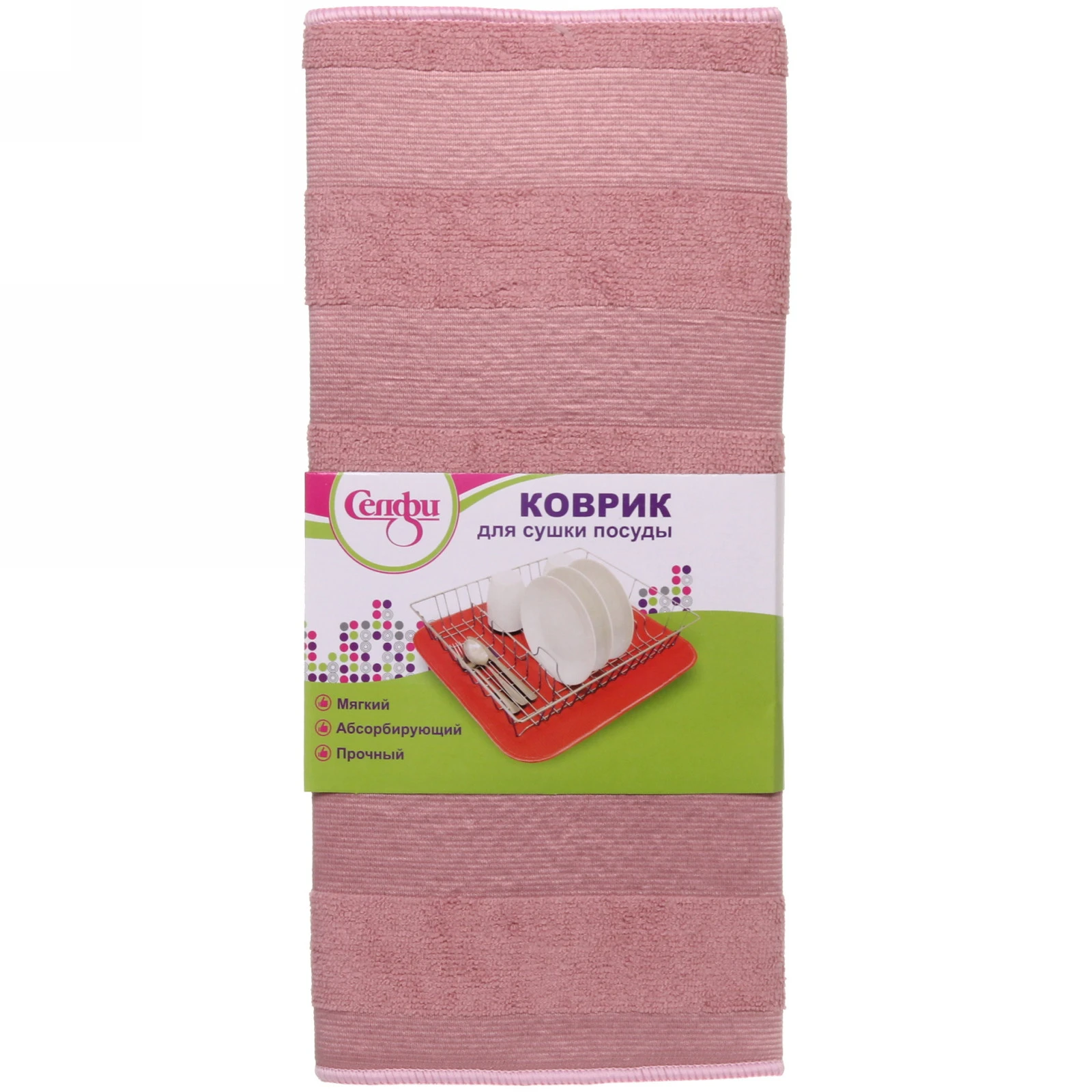 Прямоугольная форма 38×50 см оптимальна для размещения 6-8 стандартных тарелок. Чередующиеся полосы разной плотности создают воздушные карманы для ускоренной сушки. Розовый цвет маскирует случайные пятна, сохраняя эстетичный вид.