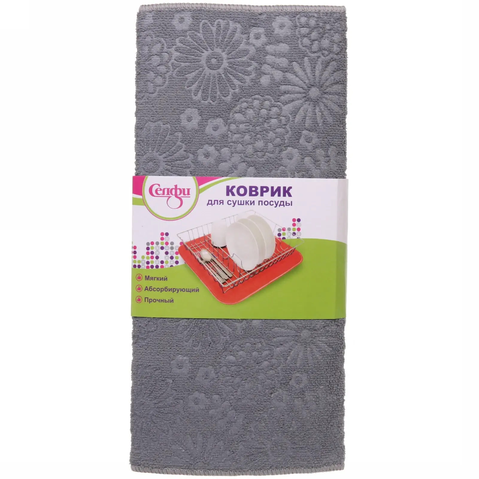 Размер коврика составляет 38х50 см, что позволяет удобно размещать на нем большое количество посуды. Его текстильная поверхность мягкая и приятная на ощупь, а рельефный узор добавляет дополнительный стиль. Коврик не занимает много места и легко складывается, что делает его удобным для хранения.