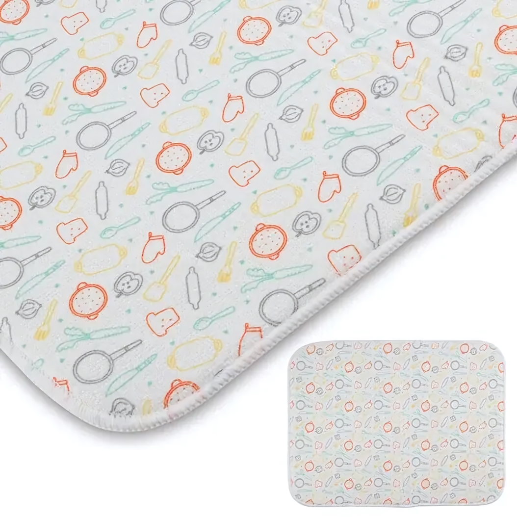 Микрофибровый коврик с оригинальным тематическим принтом превратит рутинную сушку посуды в эстетическое удовольствие. Мгновенно впитывает влагу, защищает столешницу от воды и царапин, а яркий дизайн с кухонной атрибутикой создаст настроение в интерьере.