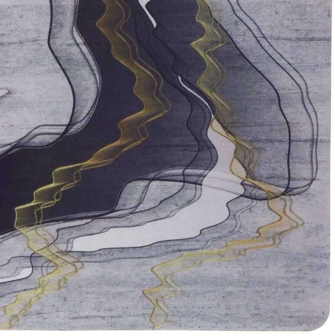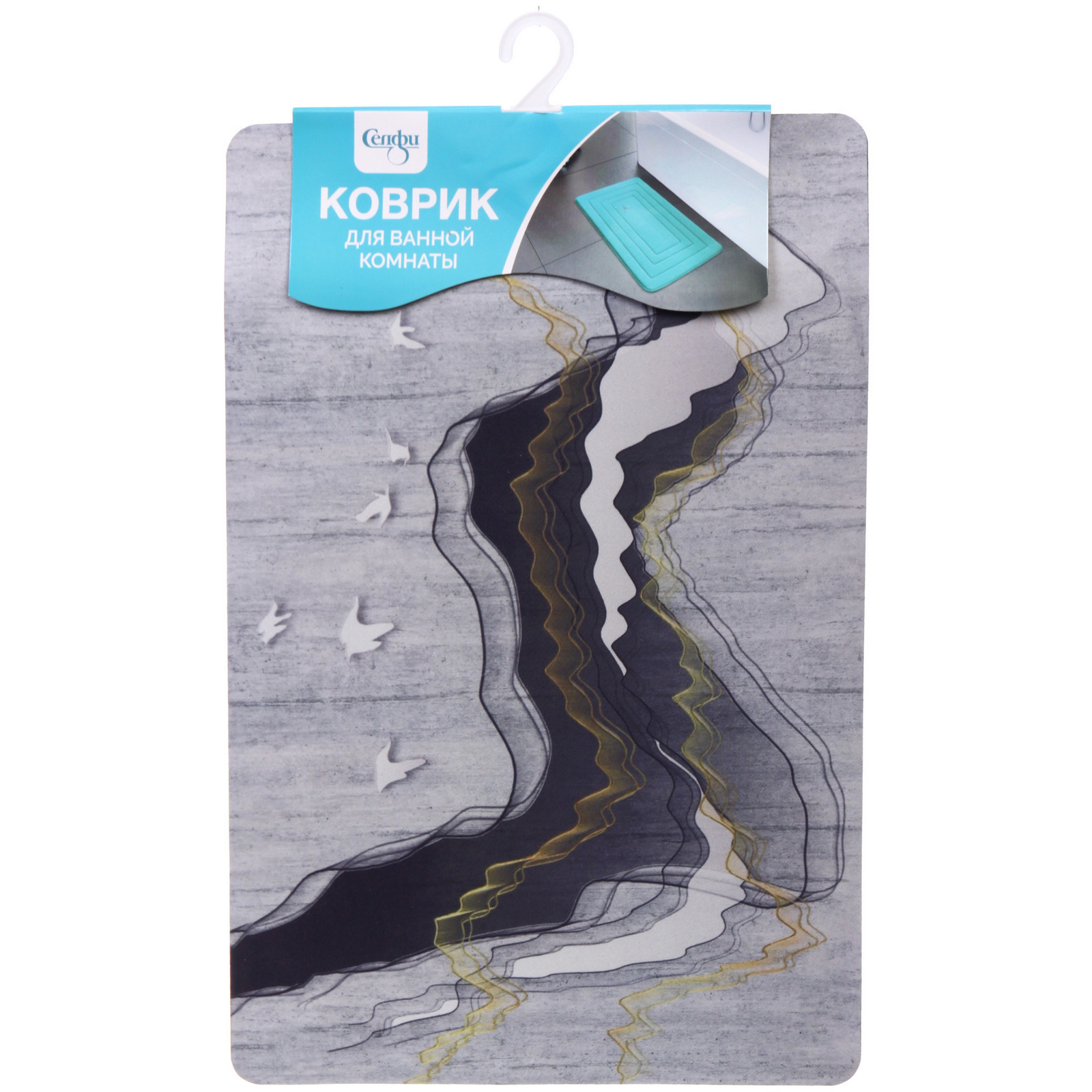 Размер коврика составляет 38х58 см, что позволяет удобно разместить его в любом пространстве. Серый цвет с белыми и черными волнистыми линиями, а также желтыми и золотыми элементами, добавляет изысканности и стиля. Коврик 'Марсо' станет не только практичным, но и эстетически приятным дополнением вашего дома.